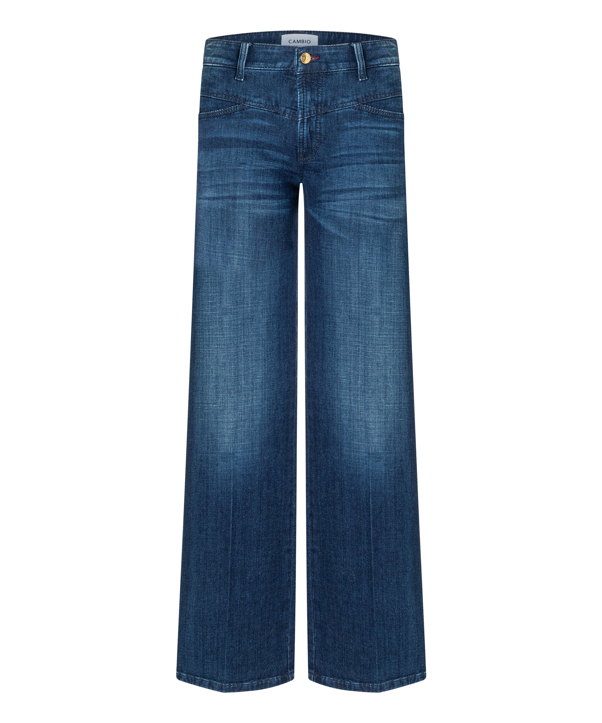 De Aimee Seam jeans is een lange wide-leg denim in diep indigo blauw, met diagonale zakken en comfortabele stretch. Stijlvol en modern.