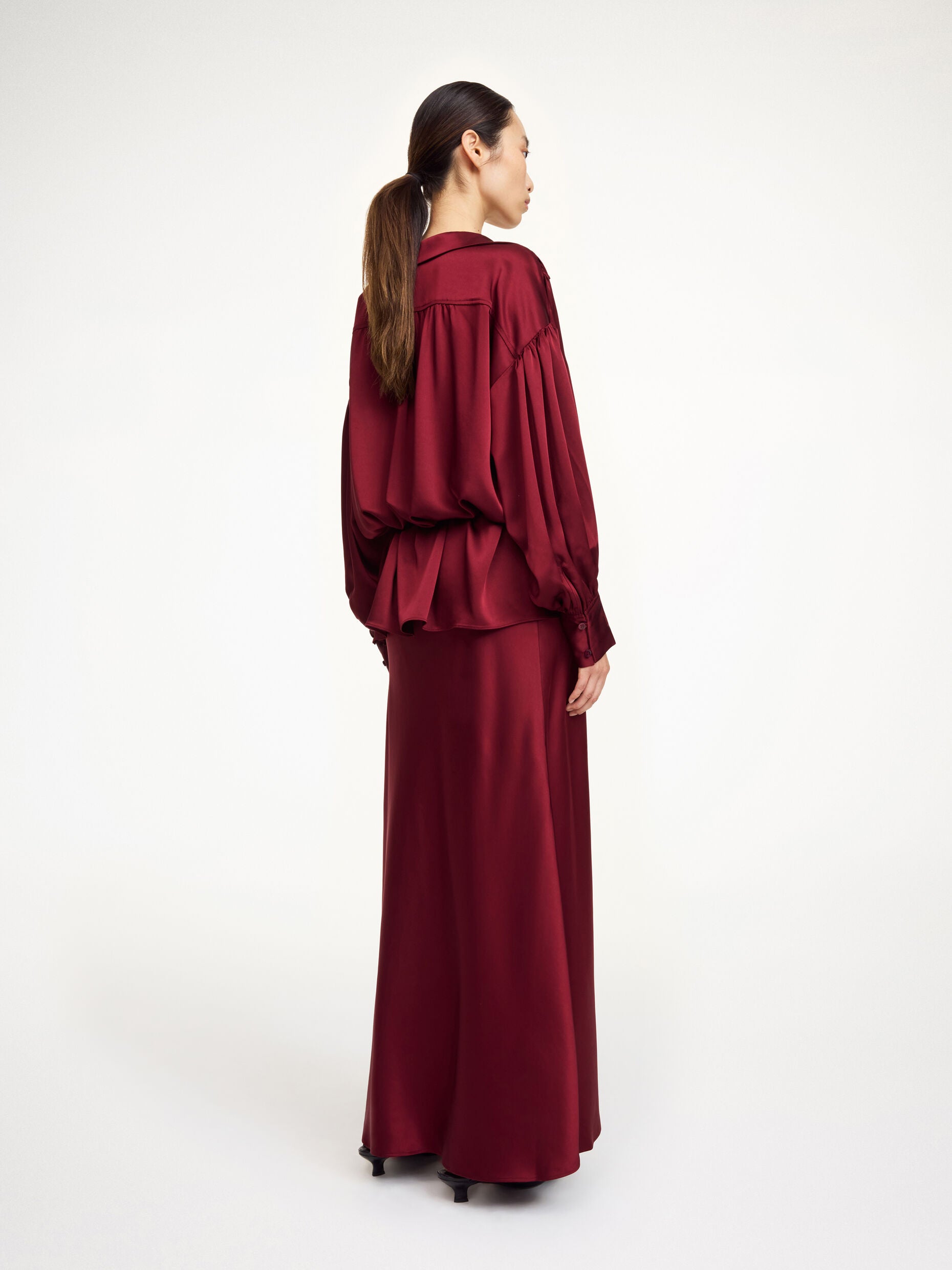Elegante satijnen maxi-rok die hoog in de taille valt en soepel uitloopt voor een tijdloze, vloeiende look.