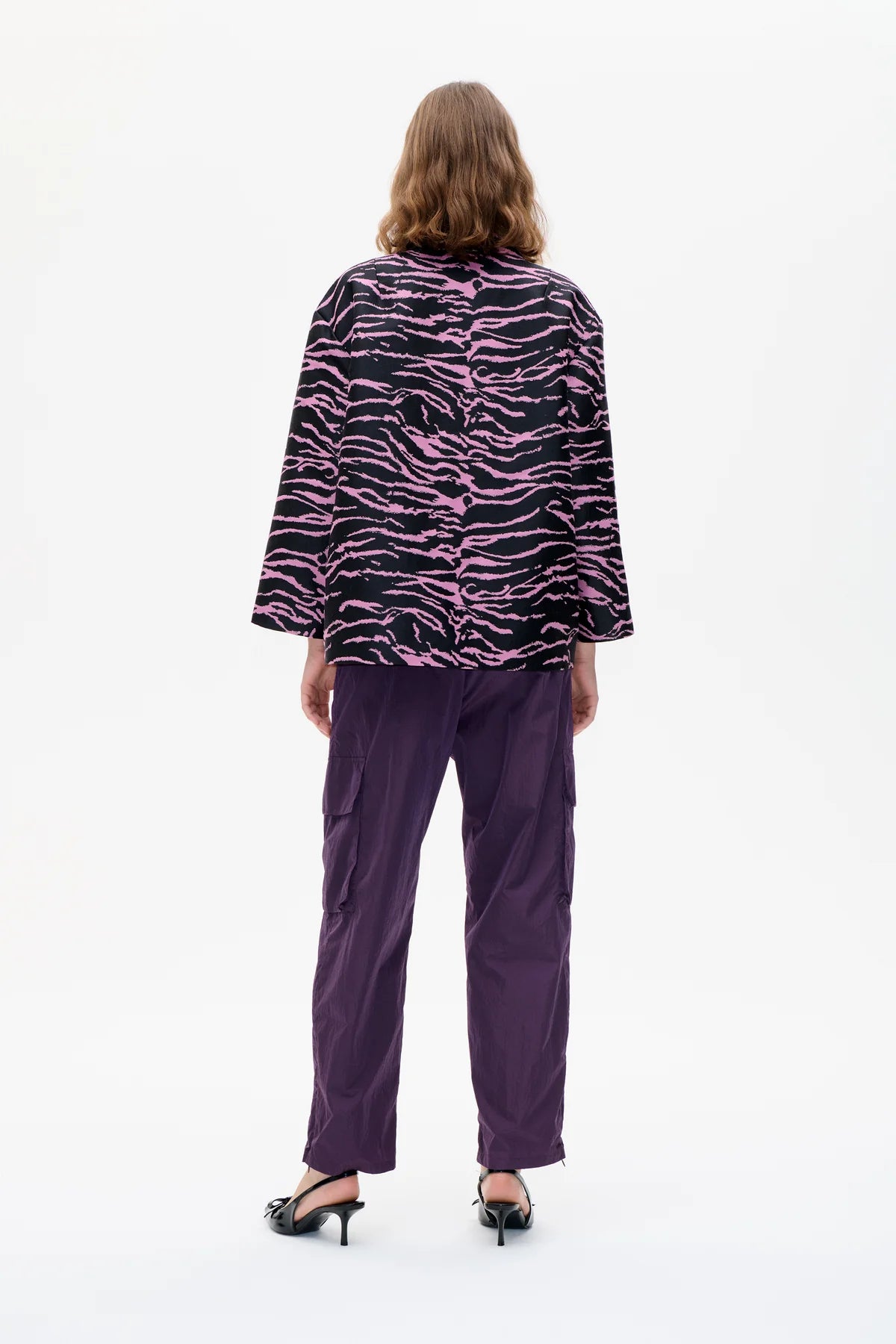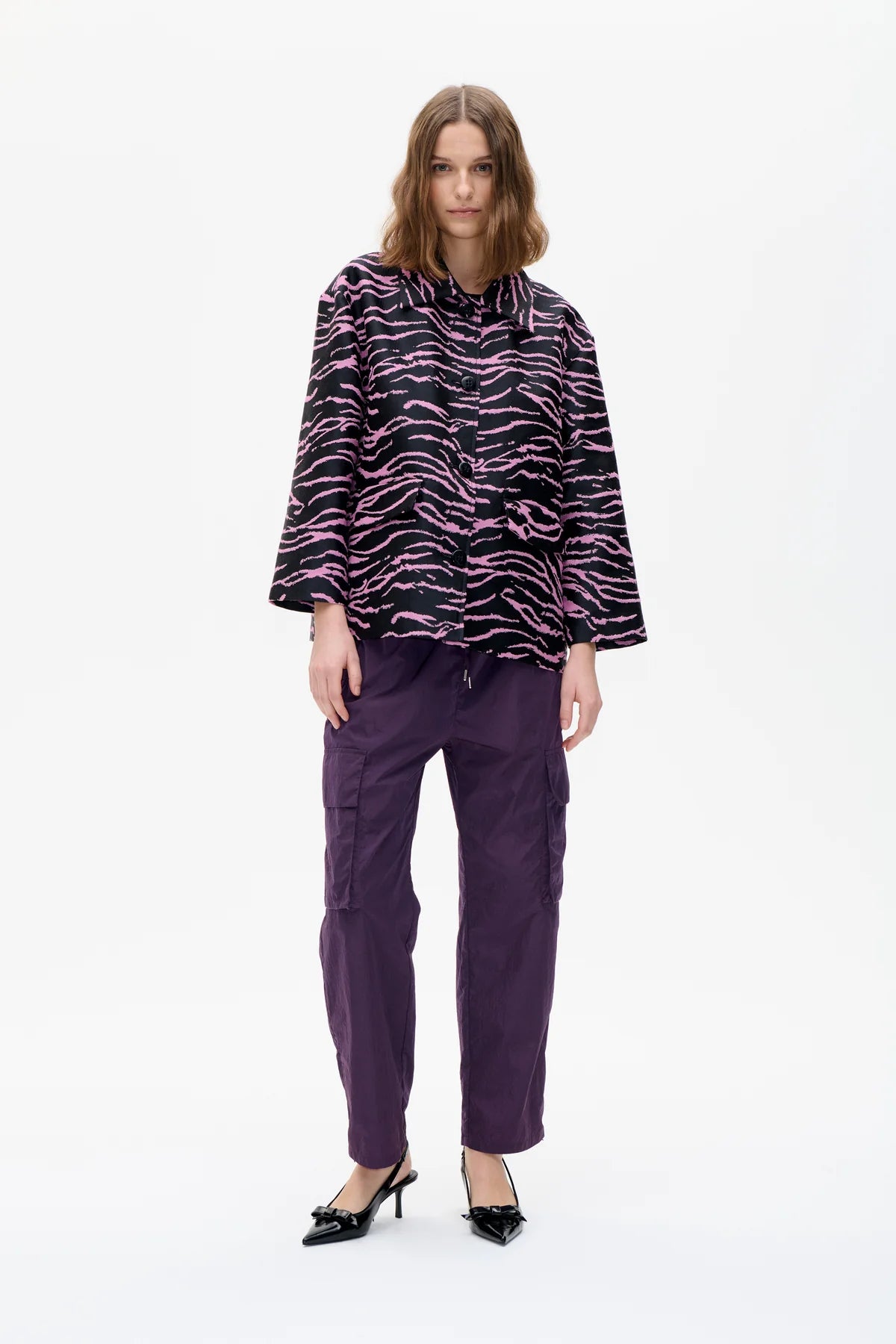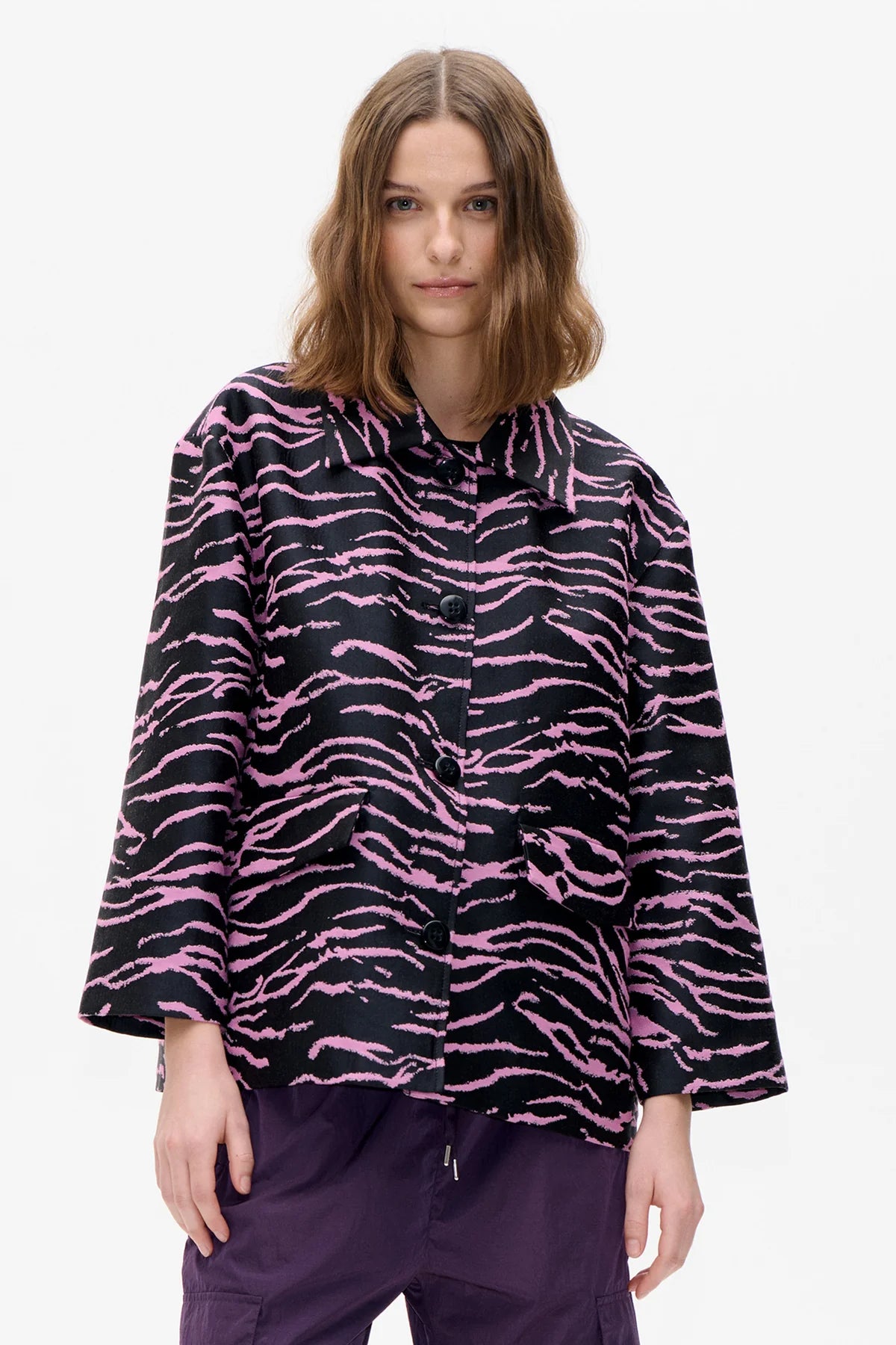 De Betina Jacket is een opvallend statement stuk met losse pasvorm, korte kraag en jacquardprint. Tijdloos en stijlvol voor elke dag.