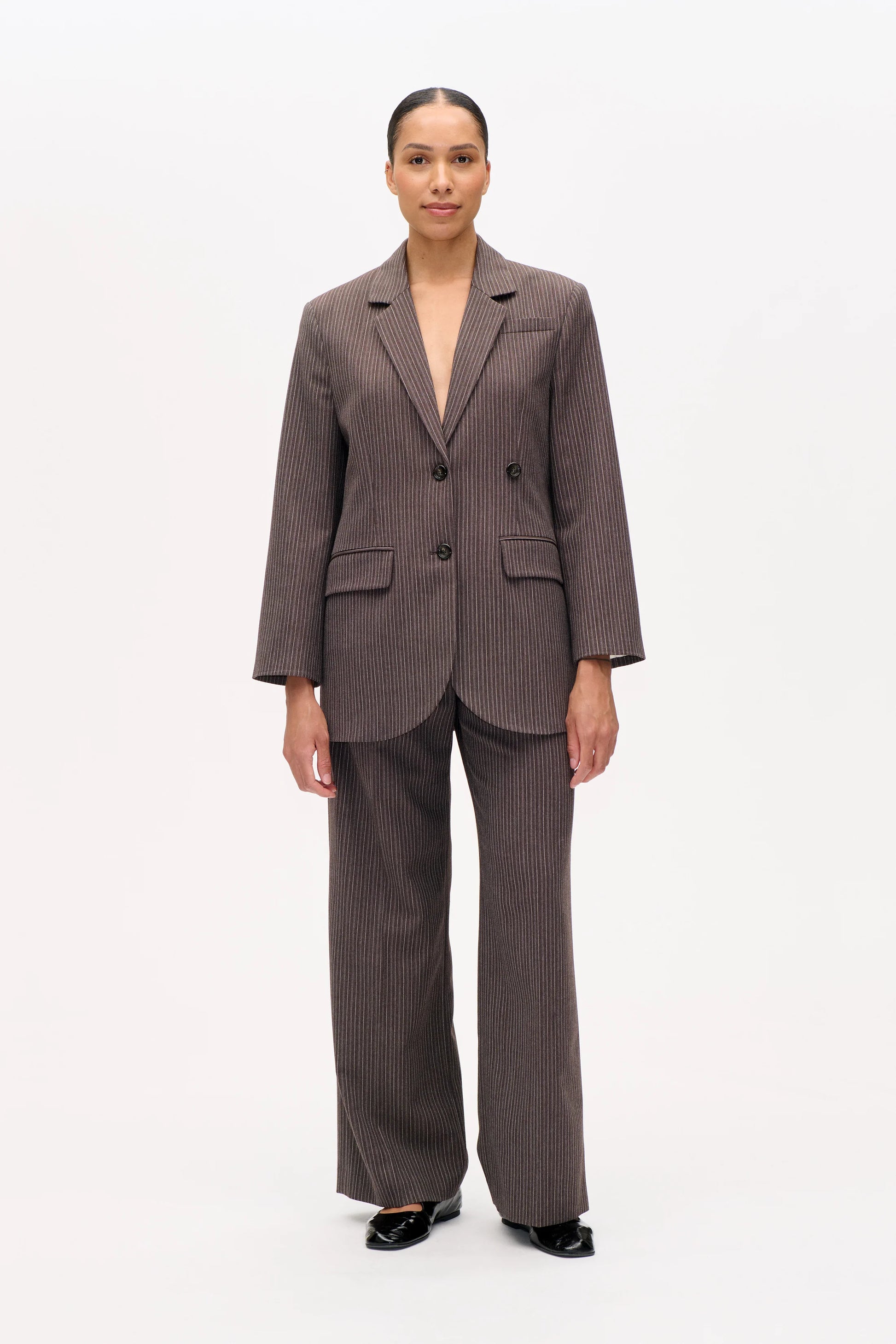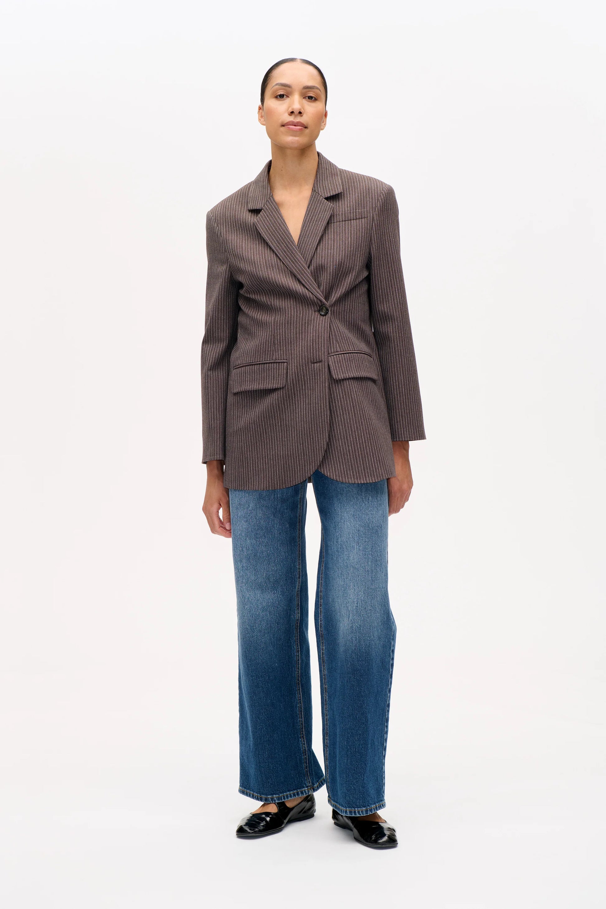 De Bleona blazer tilt de klassieke pinstripe naar een hoger niveau. Losse fit met lange mouwen en tijdloze details voor een moderne work wear look.