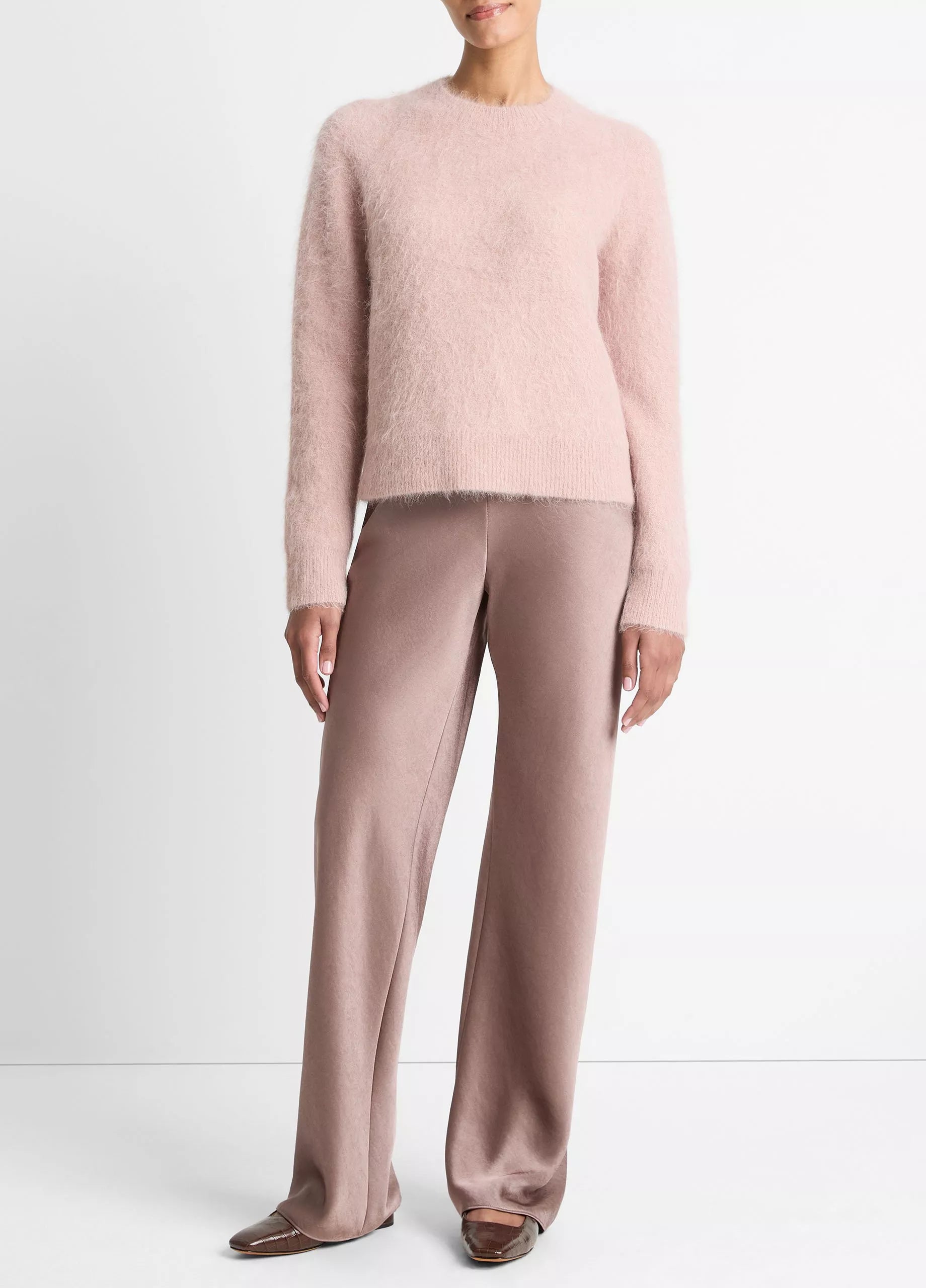Een zachte, boxy crew neck trui in een luxe alpacablend met fuzzy afwerking en ribgebreide randen voor subtiele structuur.