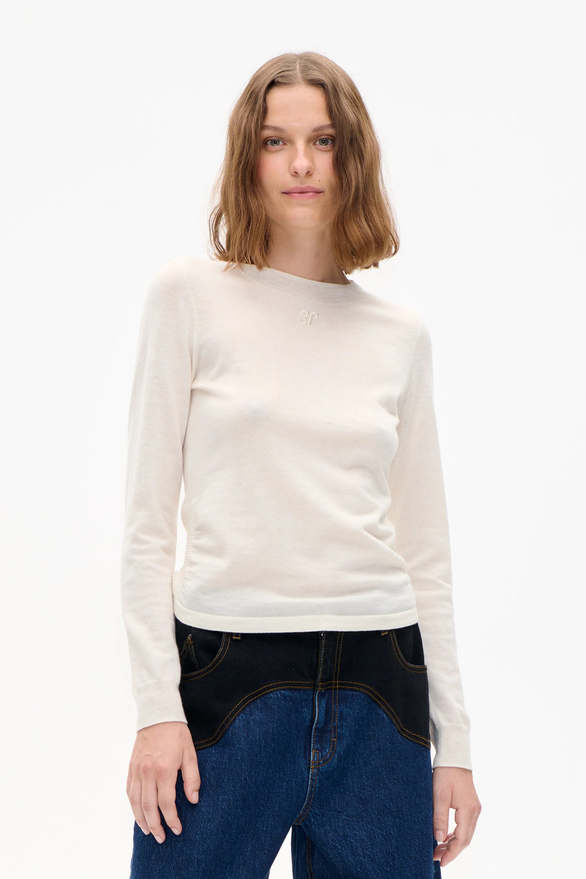 De Caitlin Top is een fijngebreide essential van zachte merinowol. De aangesloten snit en subtiele plooien aan de zijkant accentueren elegant de taille.
