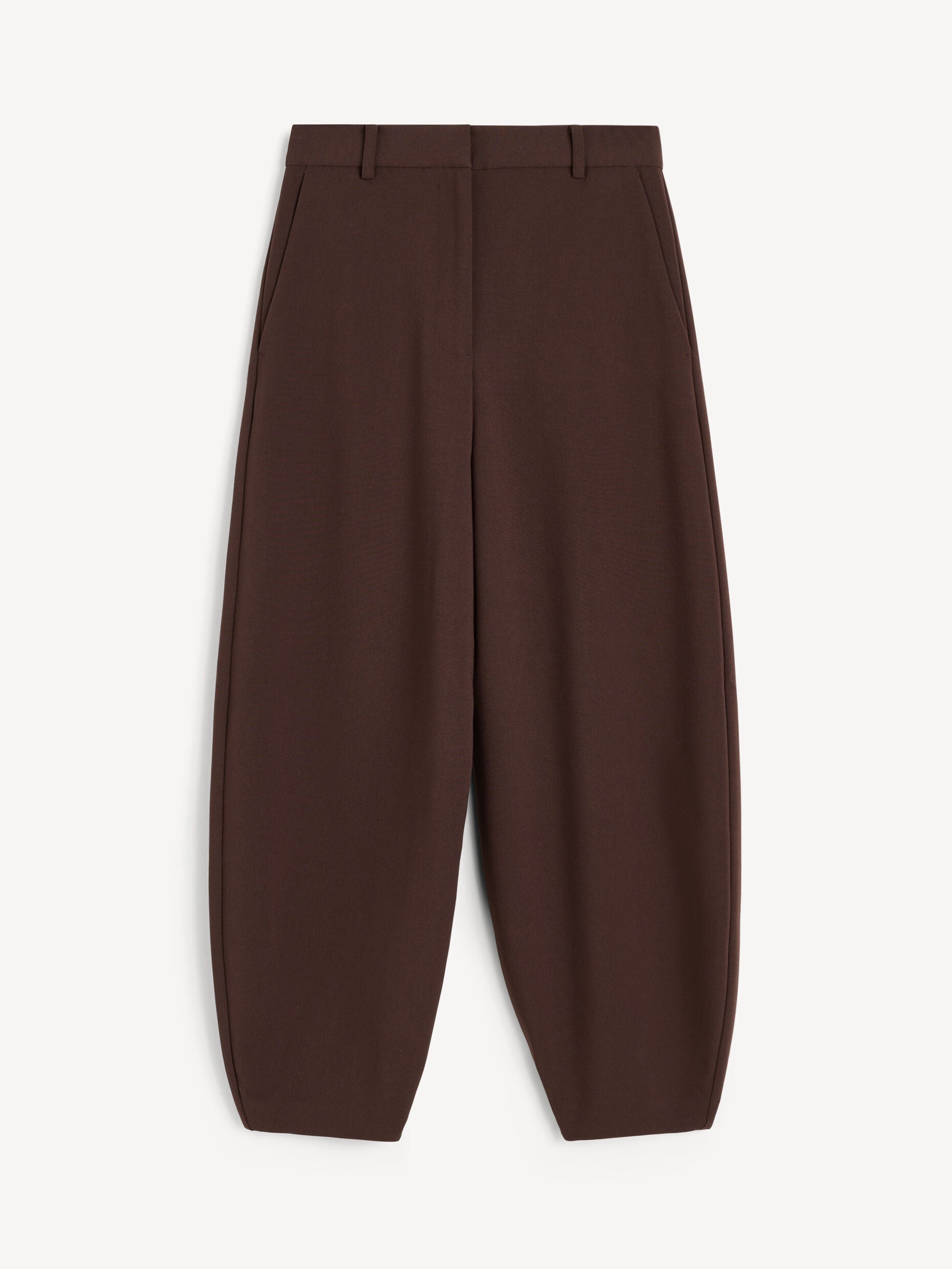 De Carlien trousers hebben een high waist en tapered legs in scuba-achtige stof. Klassieke details maken dit een veelzijdige office essential.