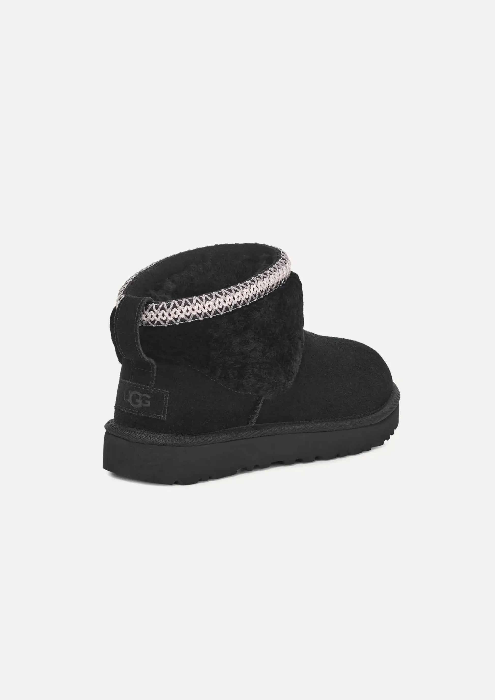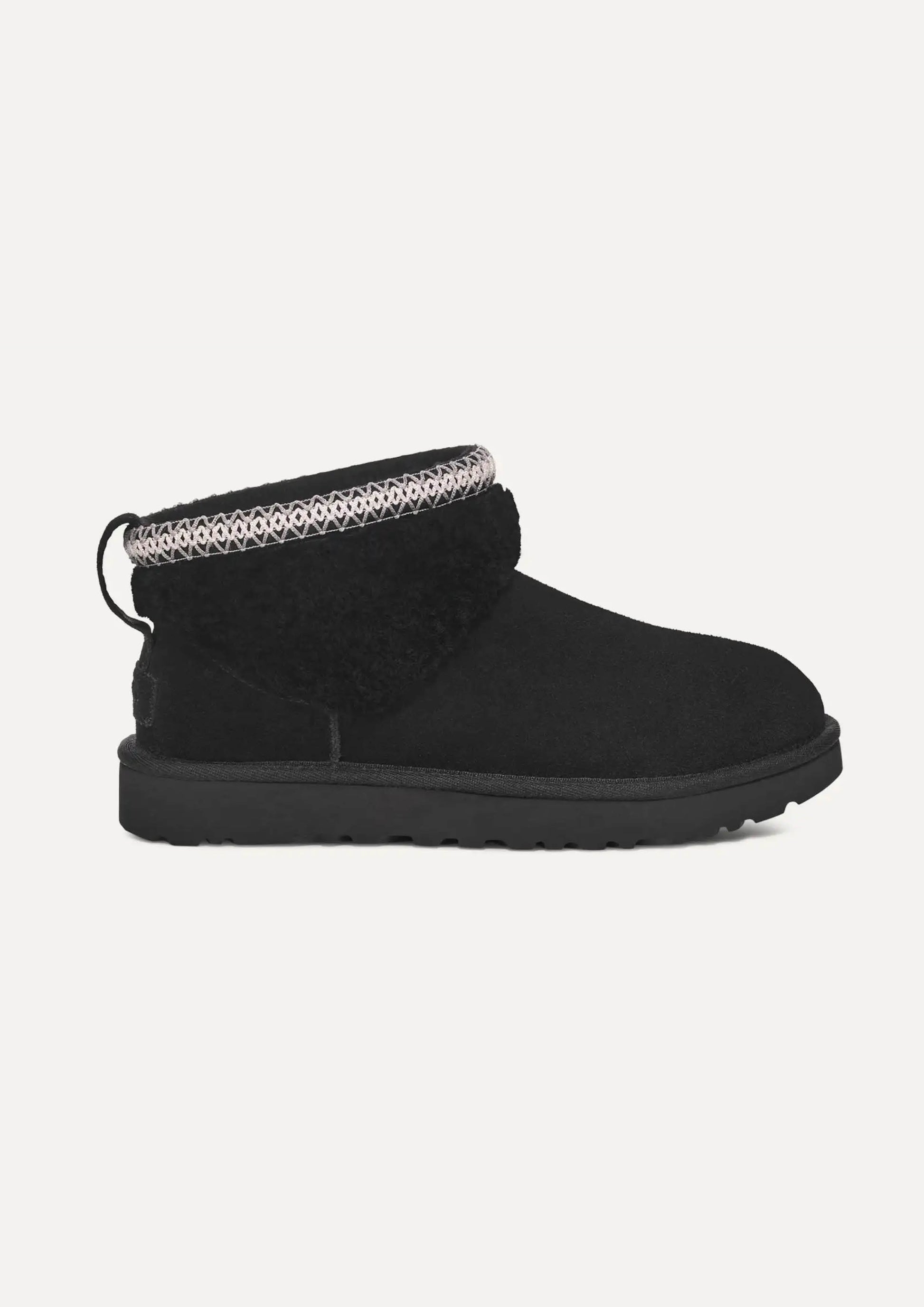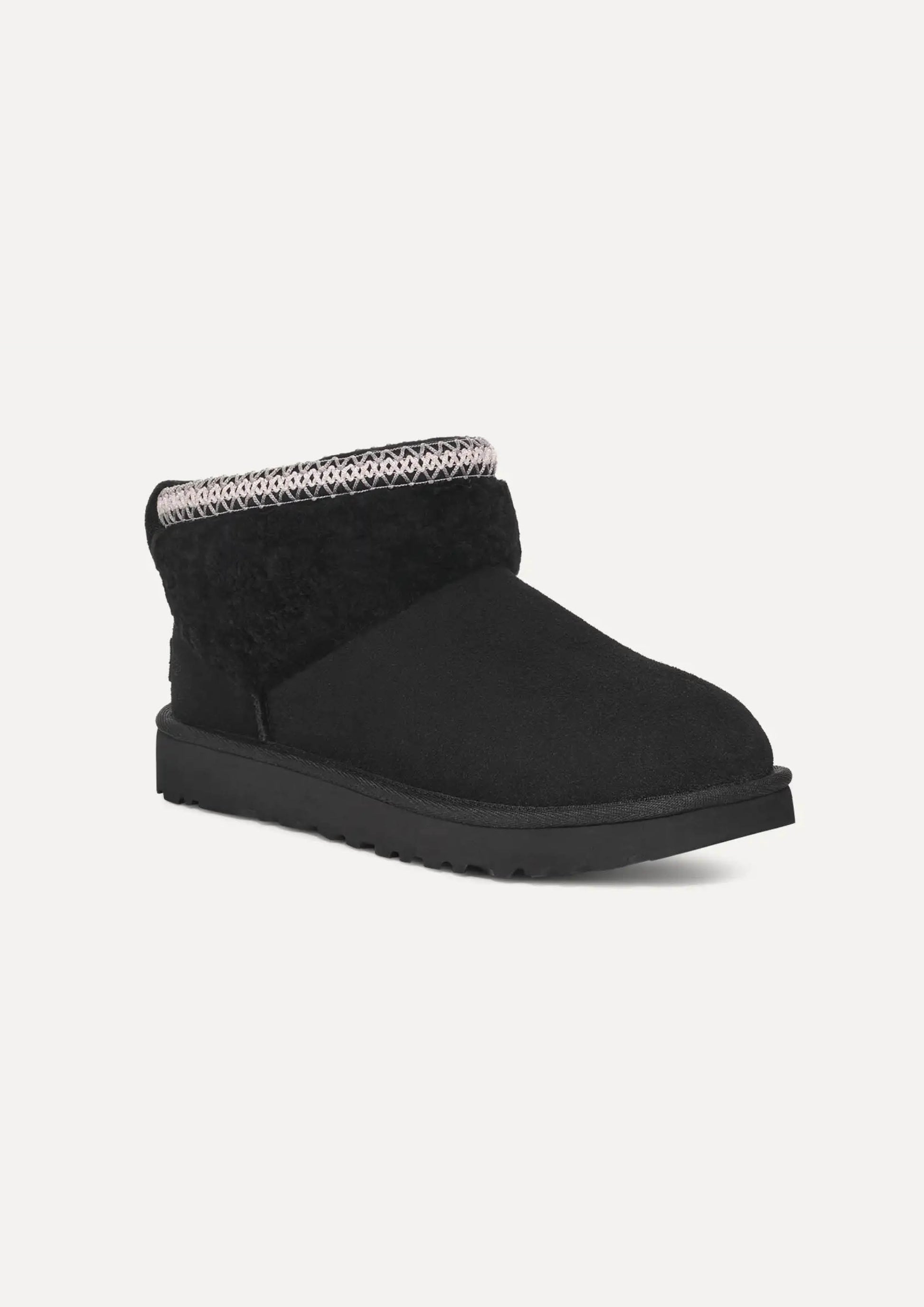 De Classic Ultra Mini Maxi Curly-laars is een getextureerde versie van onze icoon en tilt behaaglijkheid naar een hoger niveau met een bovenstuk van krullende sheepskin. Deze laarzen zijn afgewerkt met de kenmerkende UGGbraid op onze Classic-buitenzool, en je mag het heerlijk omhullende UGG-comfort verwachten waar je aan bent gewend.