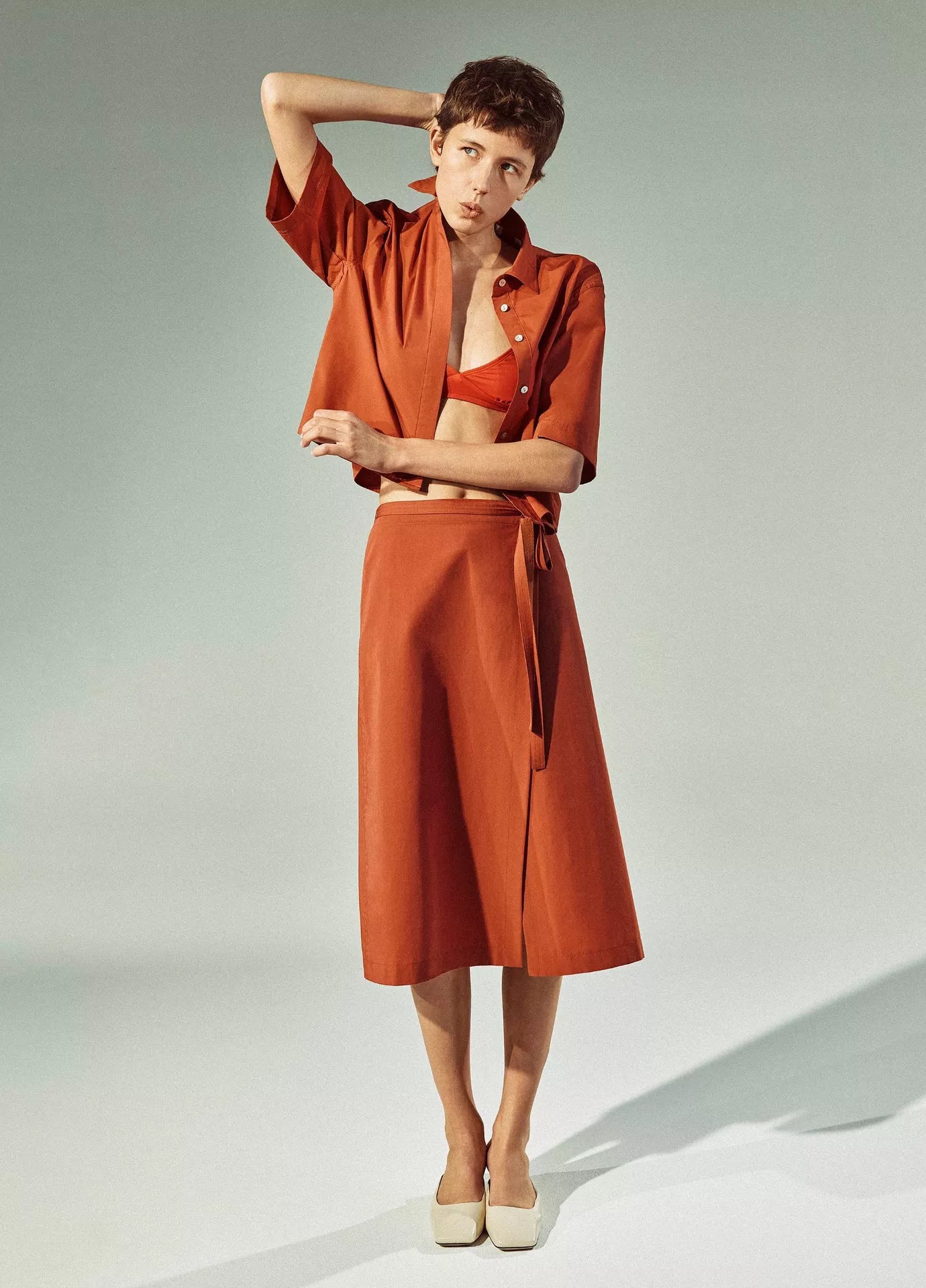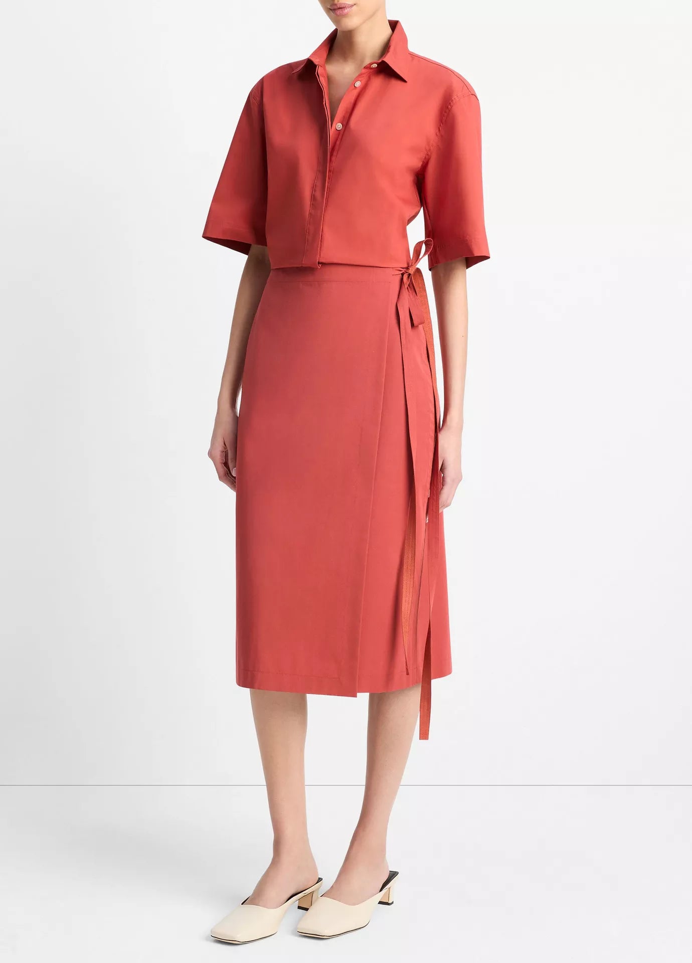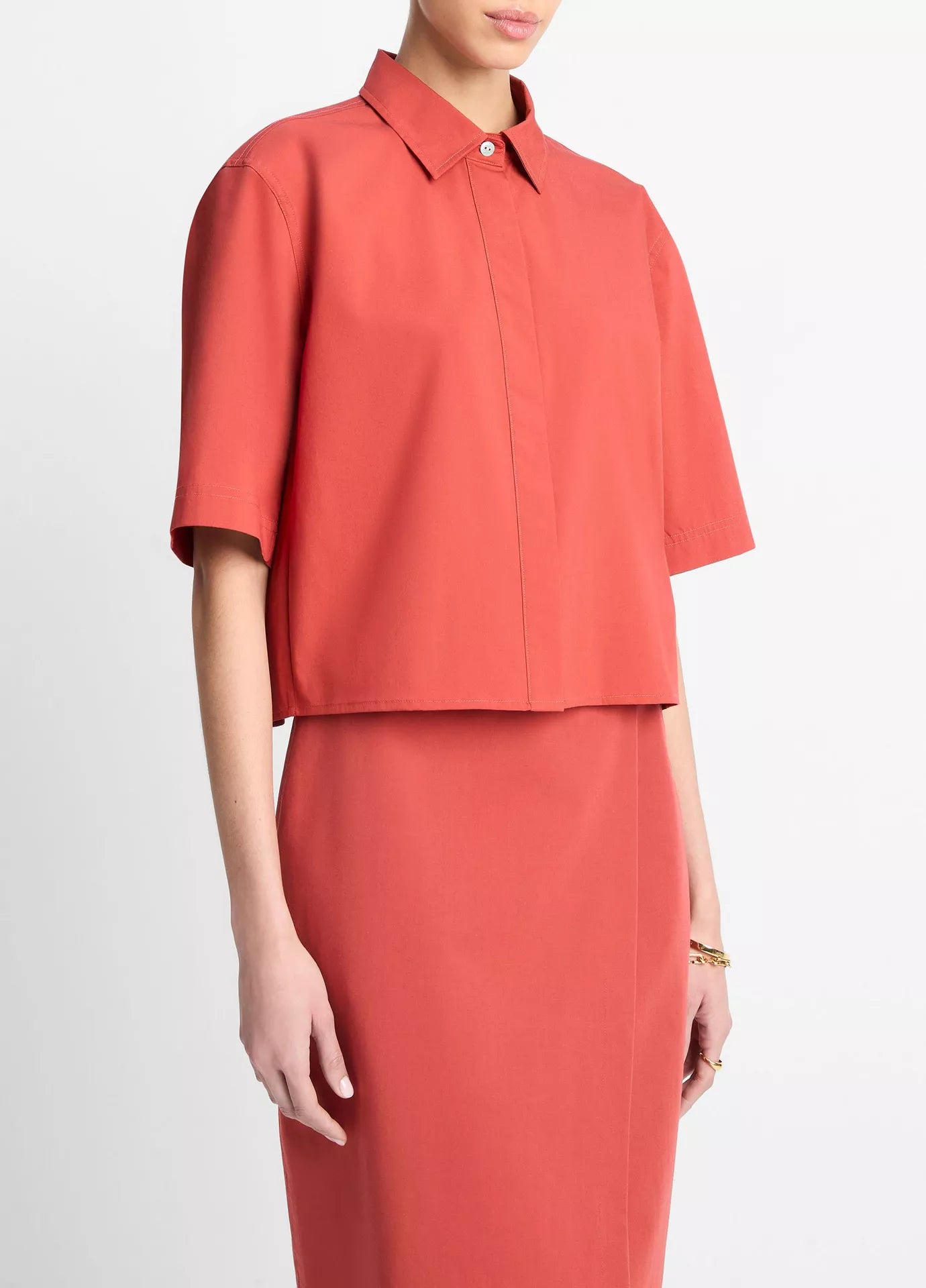 Cotton Short-Sleeve Cropped Shirt Brick Rose
