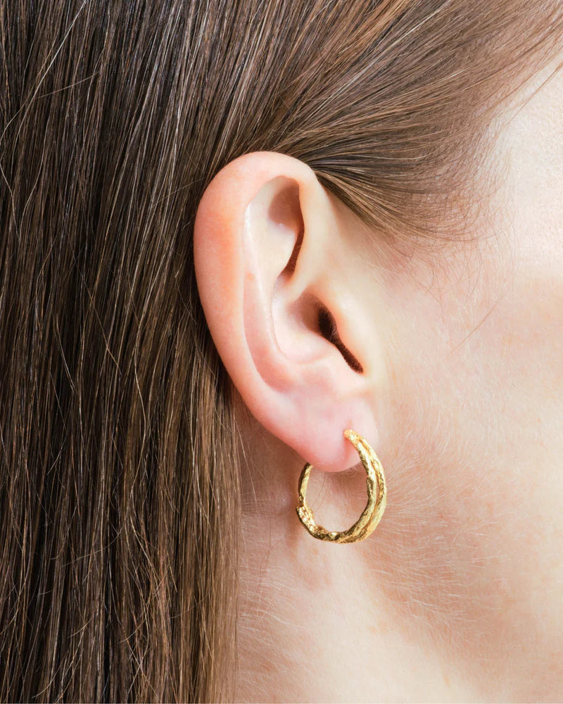 Deze dubbele oorringen met takstructuur uit de Voyages Naturalistes collectie vangen de perfecte imperfecties van de natuur. Geïnspireerd door haar oneindige schoonheid tracht de collectie het steeds veranderende vast te leggen en om te zetten in een draagbare herinnering. Elk juweel is met zorg en vakmanschap met de hand gemaakt door onze goudsmeden in het Antwerpse atelier.