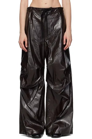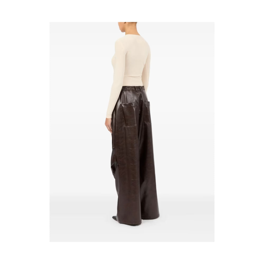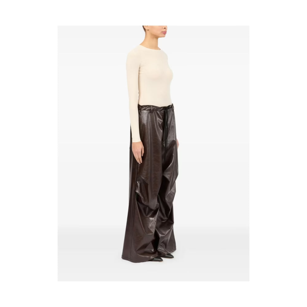Upgrade je look met deze donkerbruine, gecoate MM6-broek met wijde pijpen, trekkoord en zijzakken — stijlvol en modern in één.