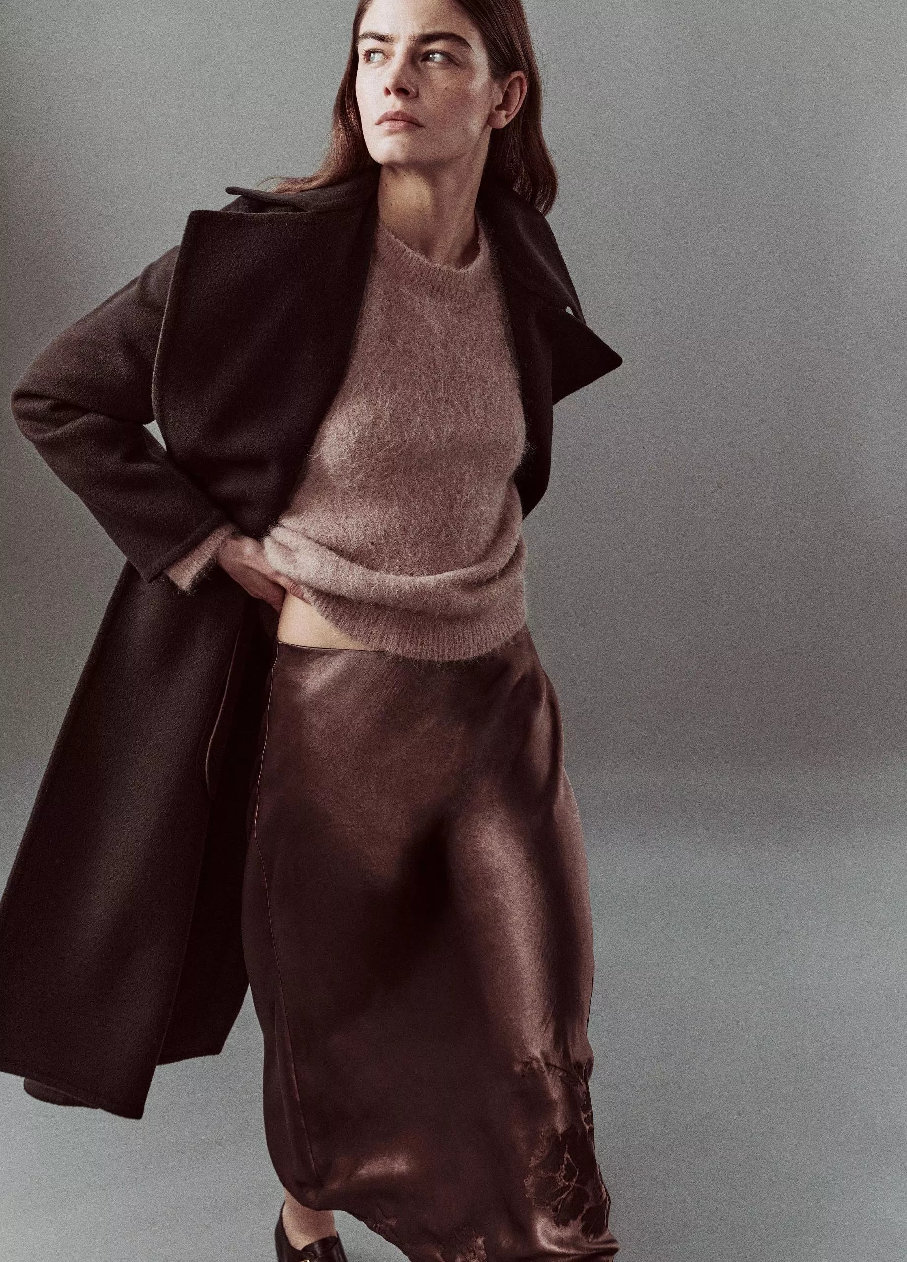 Valt slank met elastische tailleband en split achteraan. Lengte ca. 80 cm, model draagt maat S.
