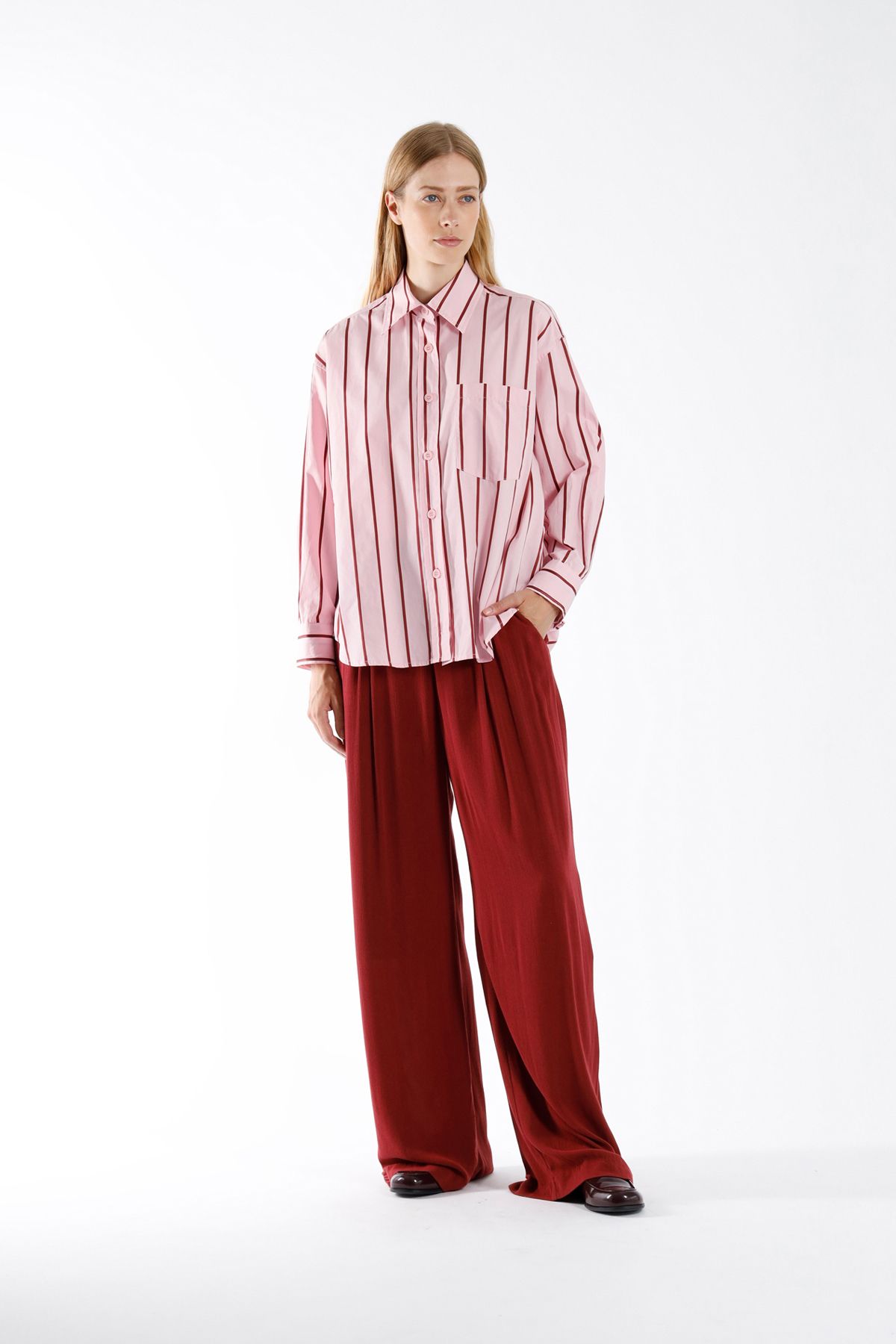 Gestreepte blouse in klassieke herenshirtstijl met een losse, licht oversized fit. Dankzij de extra knoop kun je de blouse elegant wikkelen.