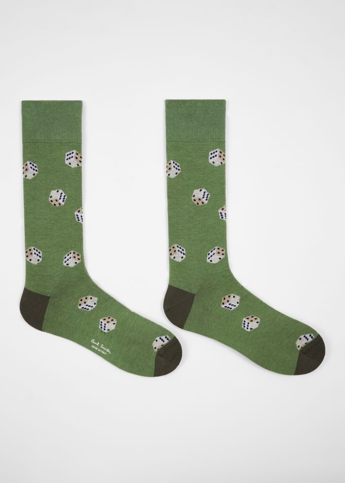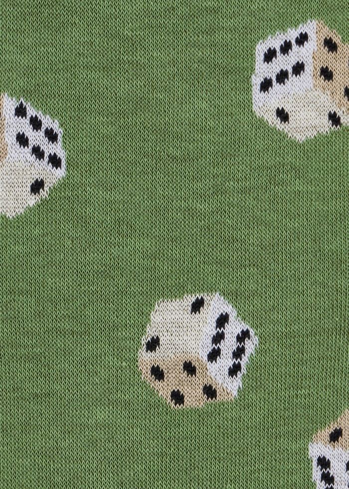 Groene Italiaanse sokken van een zachte katoenmix met een speels ‘Dice’-patroon, perfect om kleur en karakter toe te voegen aan elke look.