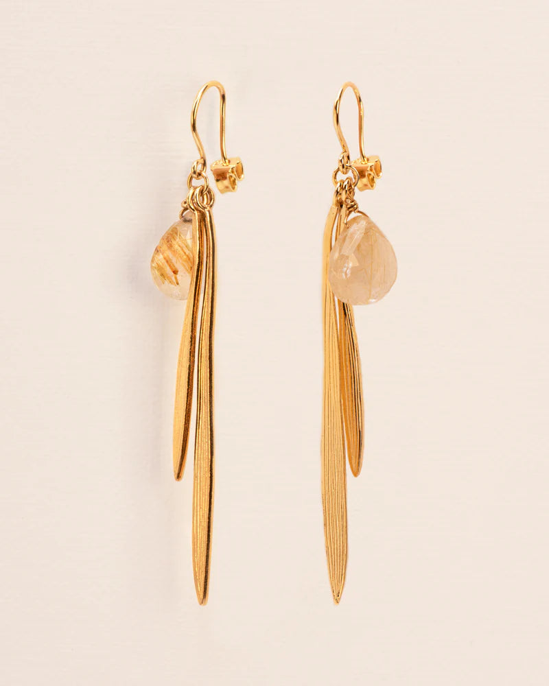 Zilveren bamboebladeren en rutielkwarts vloeien samen in deze oorbellen, geïnspireerd door en afkomstig uit de natuur. De kleur van het rutielkwarts kan variëren, waardoor elk stuk uniek is. Deze oorbellen uit de collectie Voyages Naturalistes worden met de hand vervaardigd door onze goudsmeden in het Antwerpse atelier.