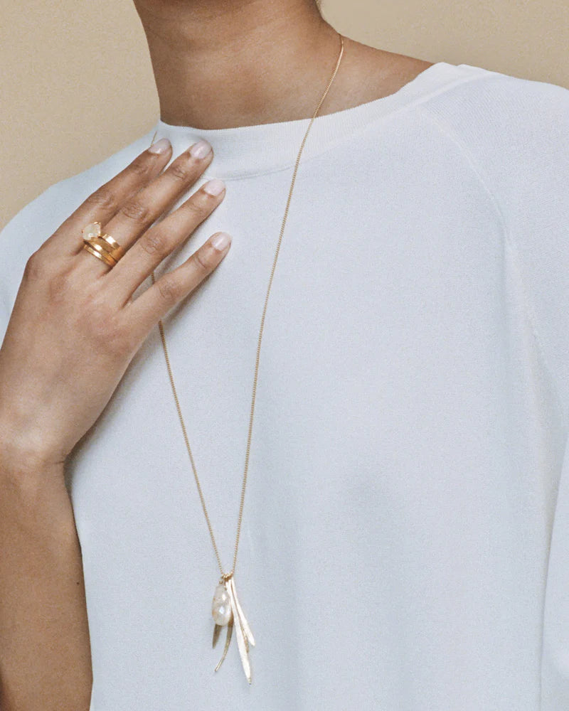 Bungelende bamboebladeren en rutielkwarts vloeien samen in deze oorbellen, geïnspireerd door en afkomstig uit de natuur. In bewondering voor de oneindige perfectie van de natuur probeert de collectie Voyages Naturalistes het steeds veranderende te vangen in een draagbare herinnering. De kleur van het rutielkwarts kan variëren, waardoor geen twee juwelen hetzelfde zijn. Elk stuk wordt met de hand vervaardigd door onze goudsmeden in het Antwerpse atelier