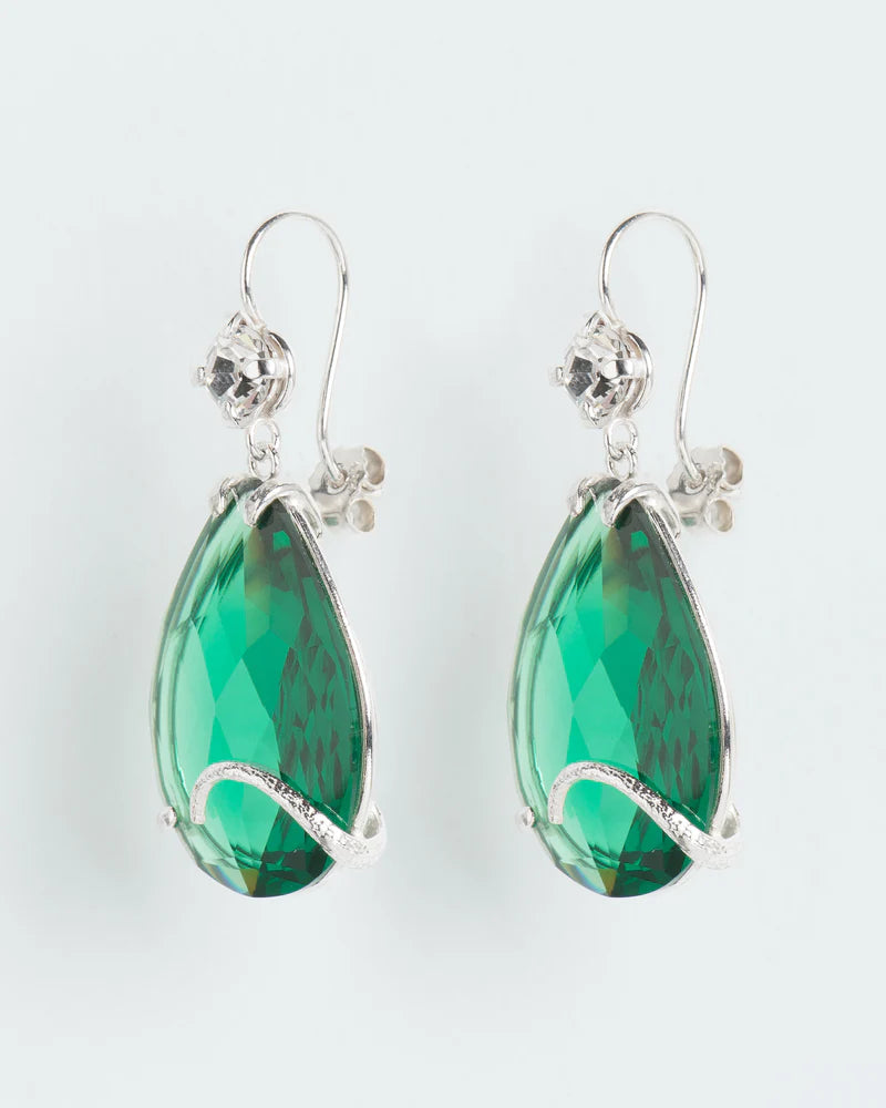 ECE014 - Sterling silver 925 - 7,6g - clear crystal - green emerald crystal - One size