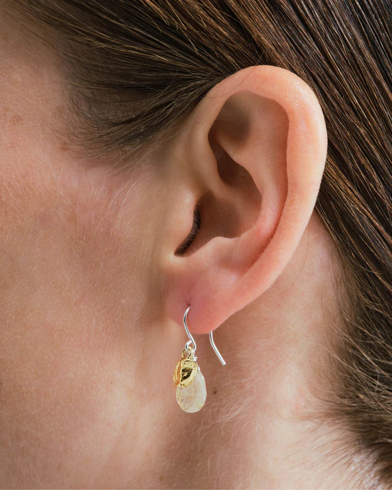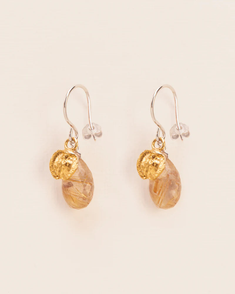 Deze haakoorbellen met rutielkwarts en mosterdzaad uit de collectie Voyages Naturalistes zijn geïnspireerd op de natuur. De kleur van het rutielkwarts kan variëren, waardoor geen twee juwelen hetzelfde zijn. Elk stuk wordt met de hand vervaardigd door onze goudsmeden in het Antwerpse atelier en straalt pure ambachtelijkheid uit.