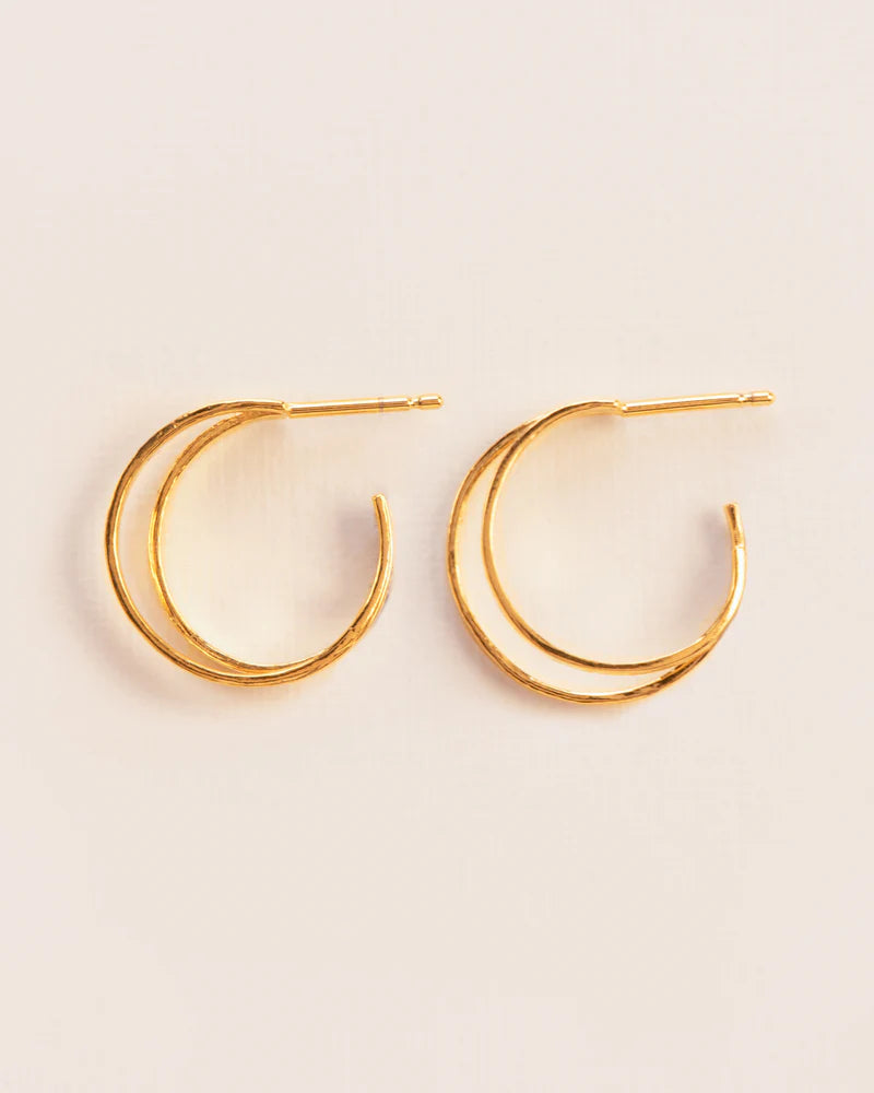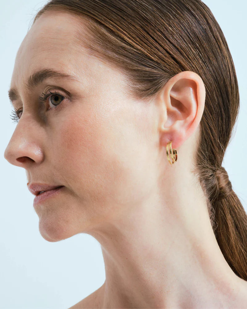 Deze sterling zilveren creolen met dubbele ring geven een eigentijdse draai aan een tijdloze klassieker. De ringen worden met de hand gehamerd in ons Antwerpse atelier – een traditionele, luidruchtige techniek die resulteert in een subtiel en verfijnd ontwerp. Door de intrinsieke schoonheid van het materiaal te tonen, zijn Les Éternelles juwelen om voor altijd te hebben en te houden.
