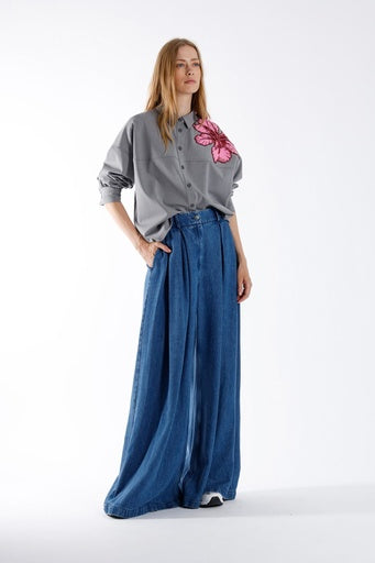 Donker blauwe denim LAPAZO-jeans met speelse plooien die extra volume en karakter geven. Een eigentijdse blikvanger voor elke dag.