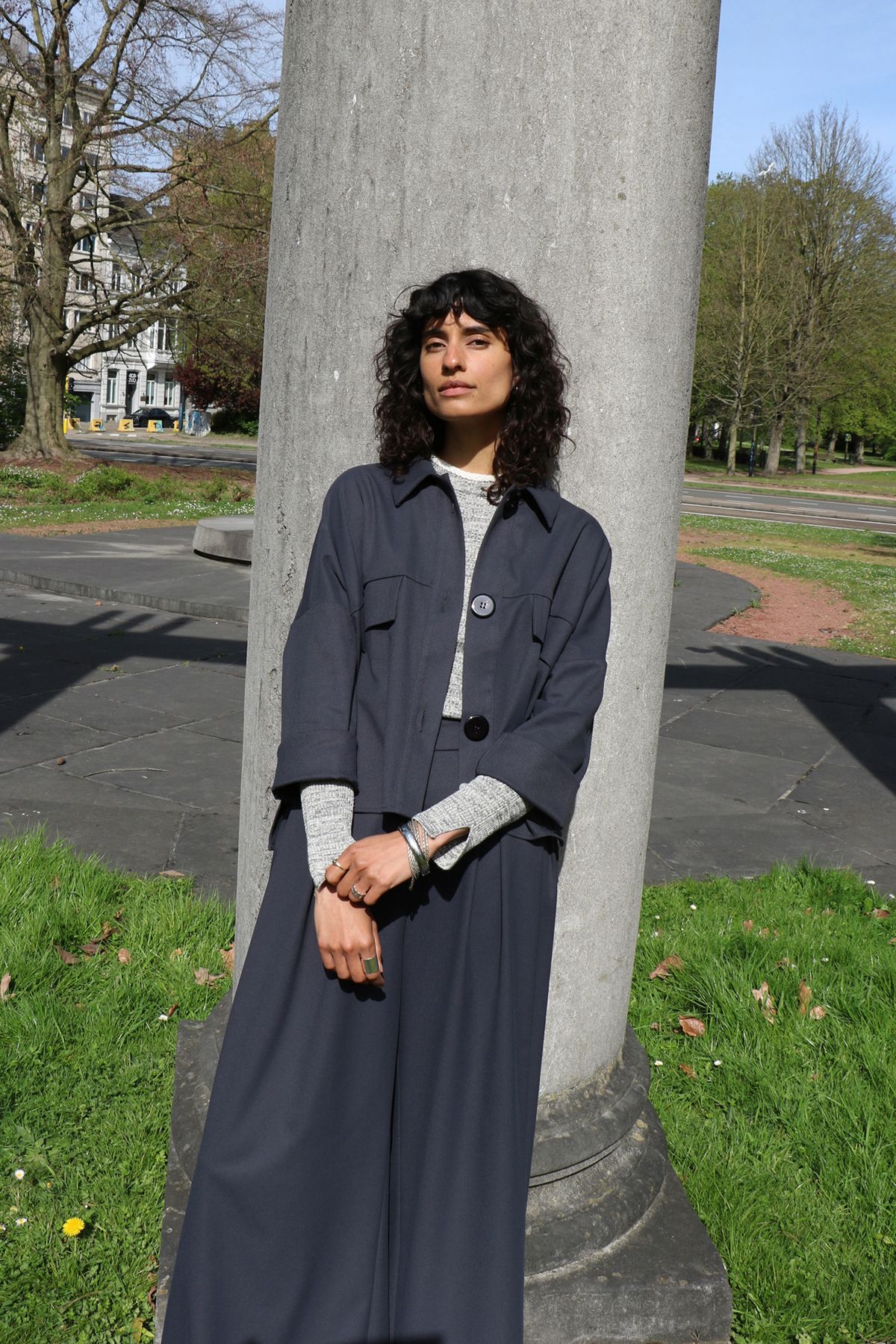 De Latina blouse heeft een oversized boxy silhouet met verlaagde schouders en zijsplitten. Te dragen als blouse of lichte jas.