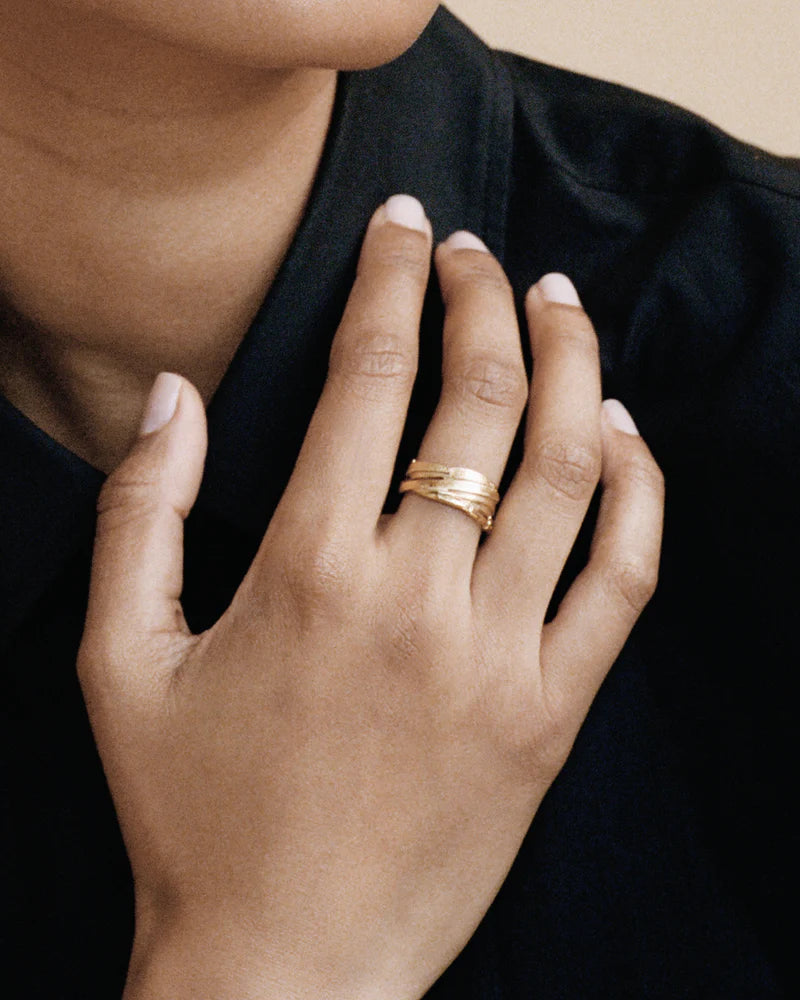 Bladeren die je vinger omhelzen als een vleugje natuur. In bewondering voor de oneindige perfectie van de natuur probeert de collectie Voyages Naturalistes het steeds veranderende te vangen en om te zetten in een draagbare herinnering. Elk stuk wordt met de hand vervaardigd door onze goudsmeden in het Antwerpse atelier.