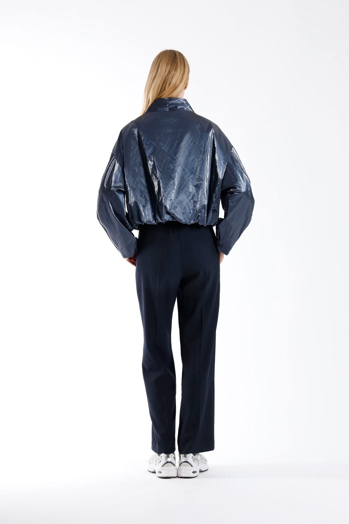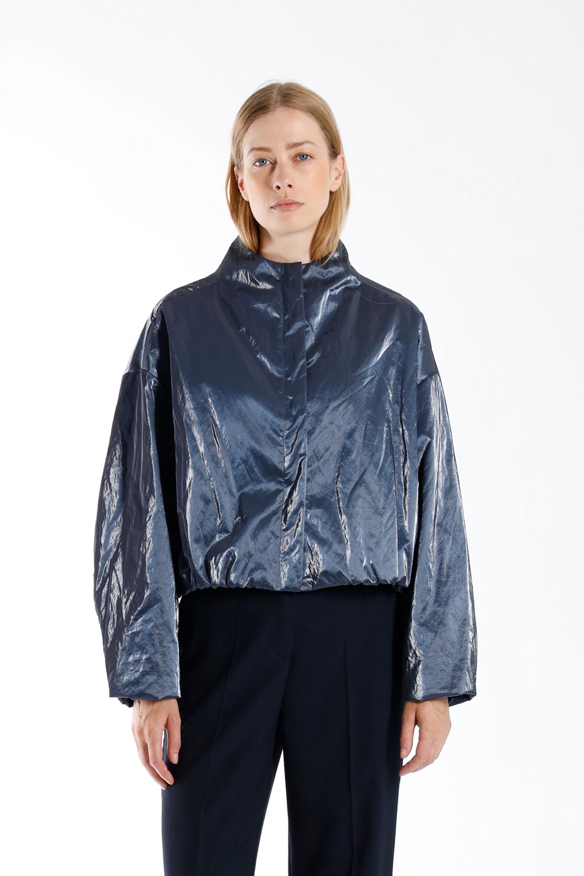 Relaxed fit met opstaande kraag, verlaagde schouders en elastische zoom