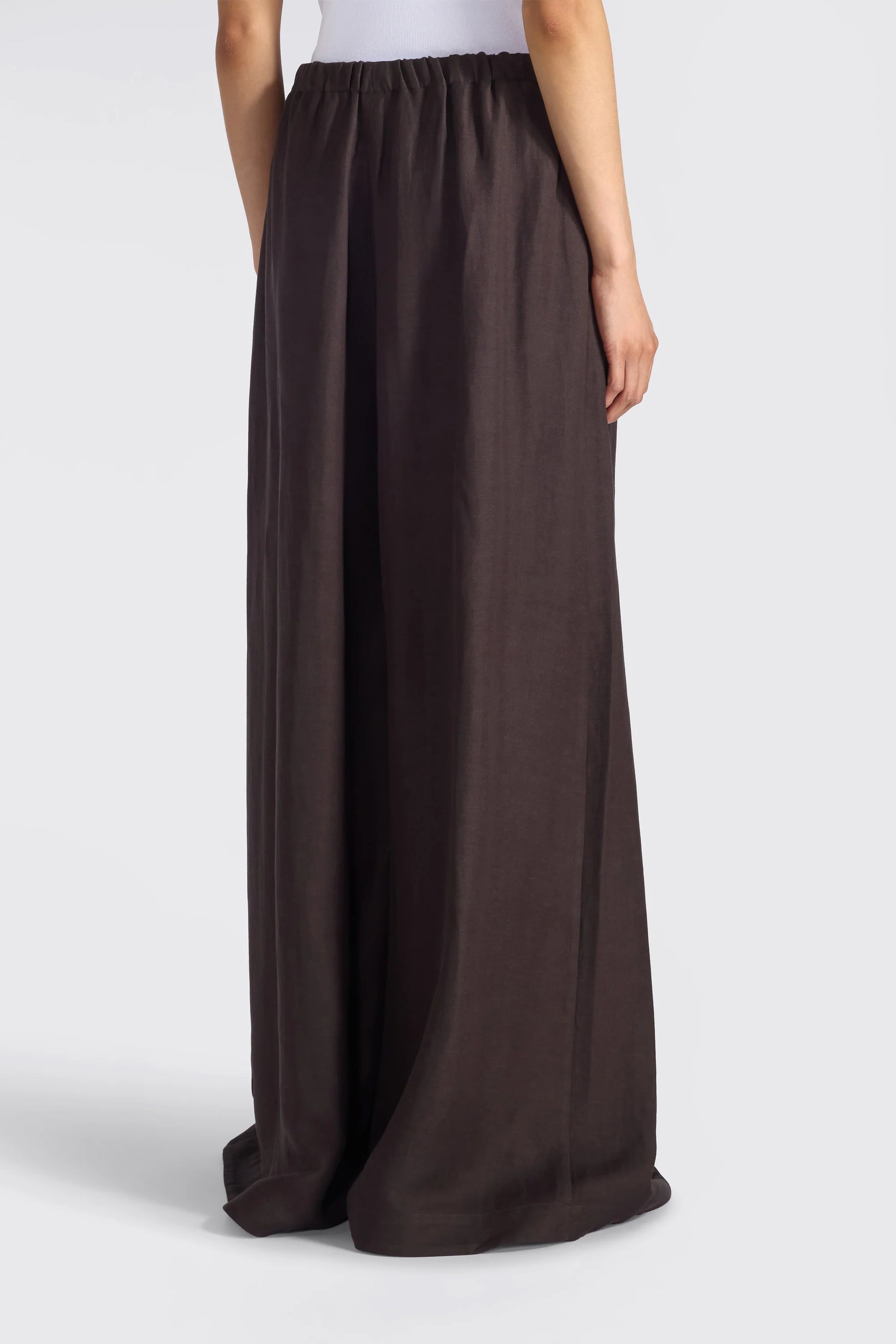 Luchtige broek met koord, rokachtig volume en extra wijde pijpen tot aan de enkel voor een soepel silhouet.
