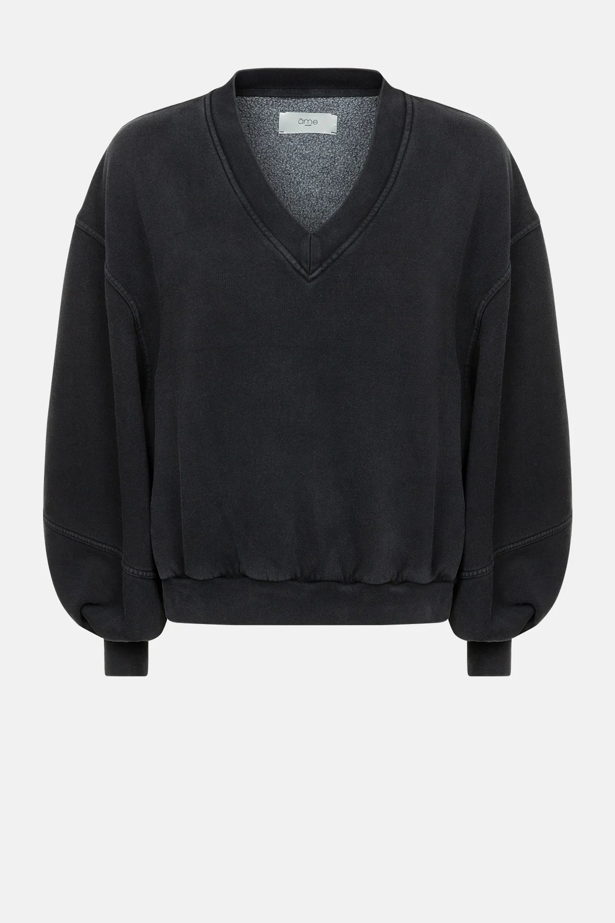 De V-neck sweatshirt is een variant op de bestseller Kim, dit keer met V-hals. Perfect te combineren met denim of de Maya skirt voor een casual look.