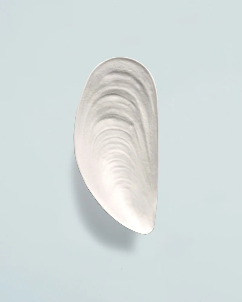 De porseleinen Marcel kommen, geïnspireerd op Marcel Broodthaers’ Mosselpot, brengen het speelse surrealisme van Wouters & Hendrix naar de tafel. Hun fascinatie voor gewone objecten in onverwachte contexten komt tot leven in deze glanzend zwarte mosselkommen—een knipoog naar de iconische mosselvormige bedels uit de La Fête des Bêtes-collectie.