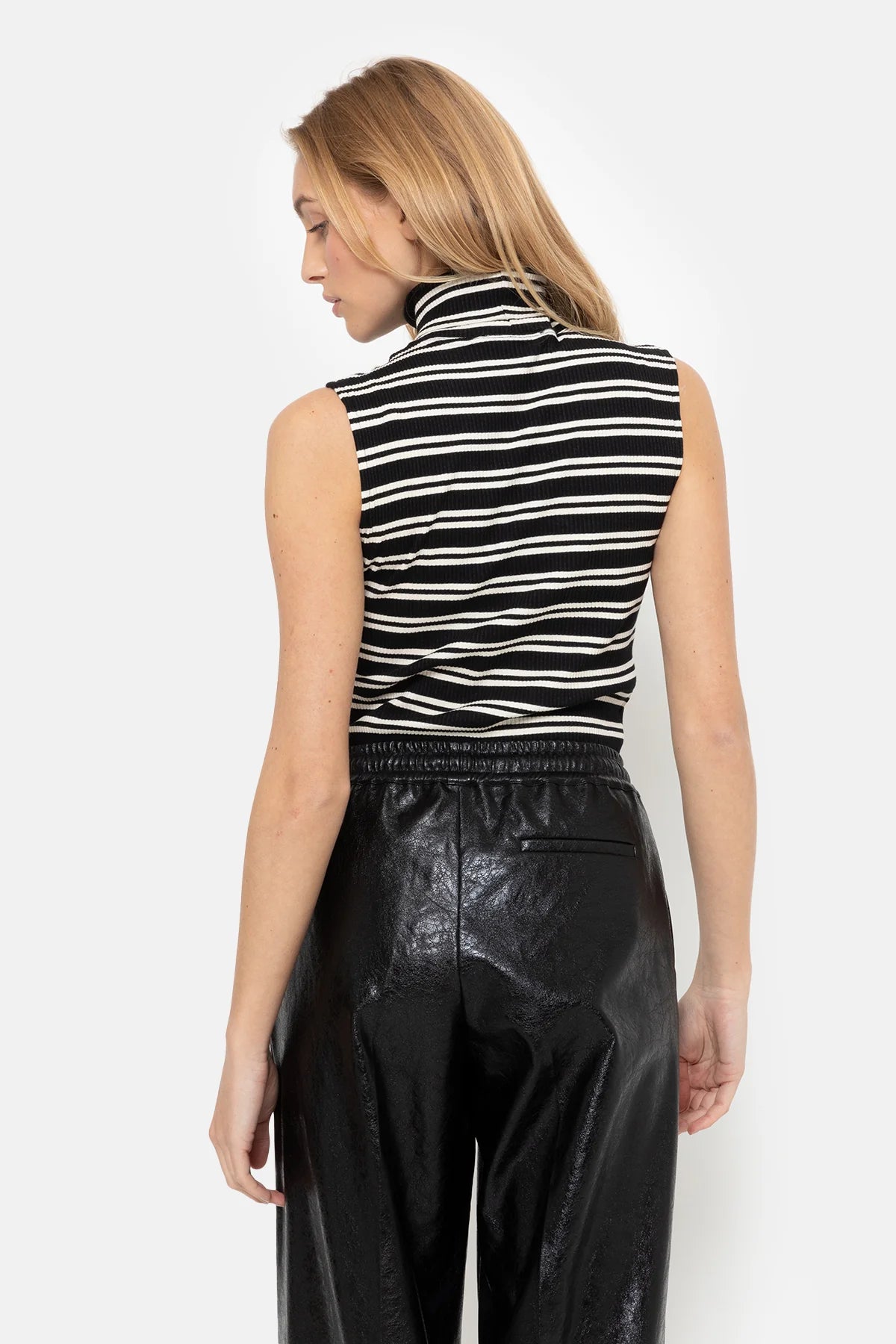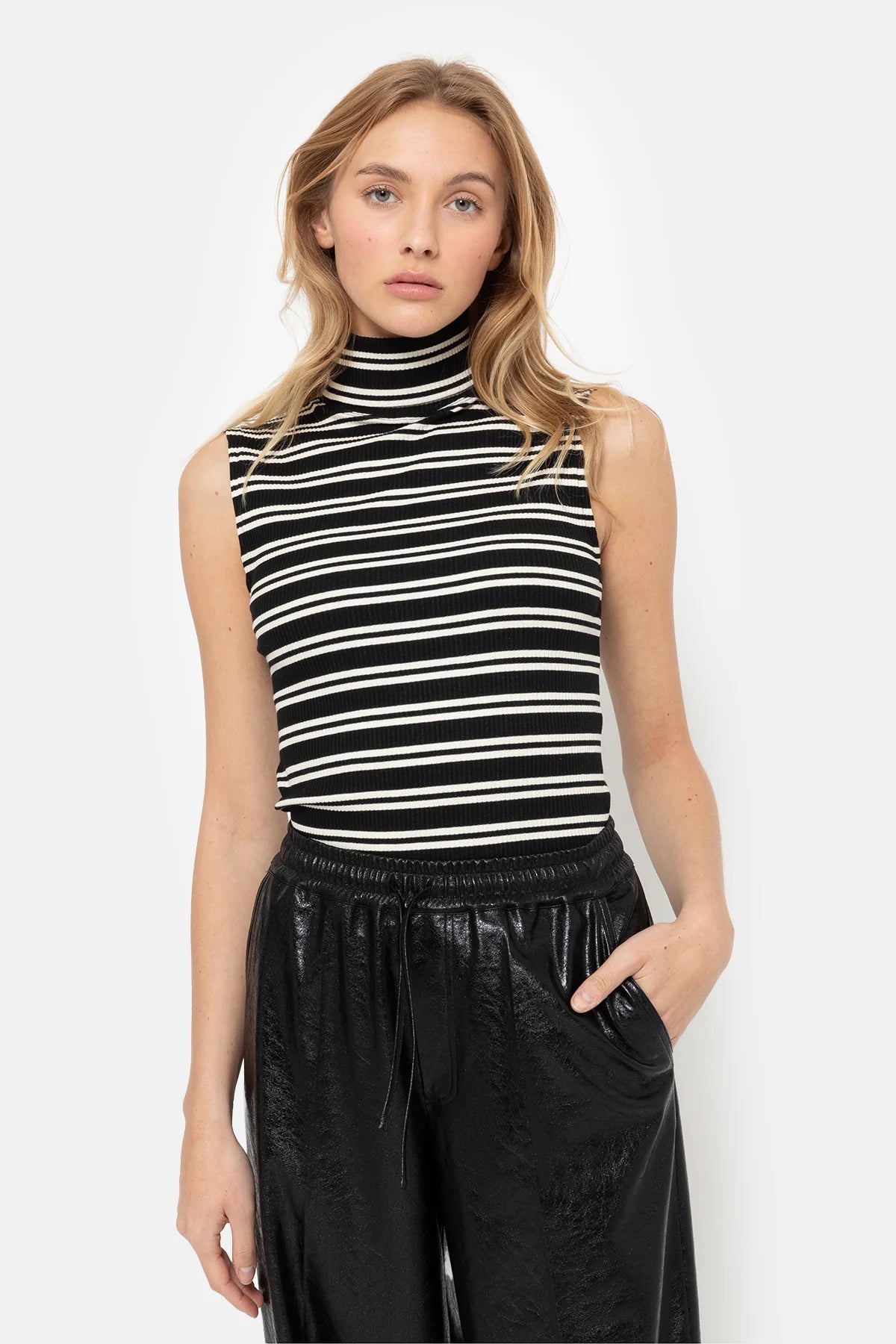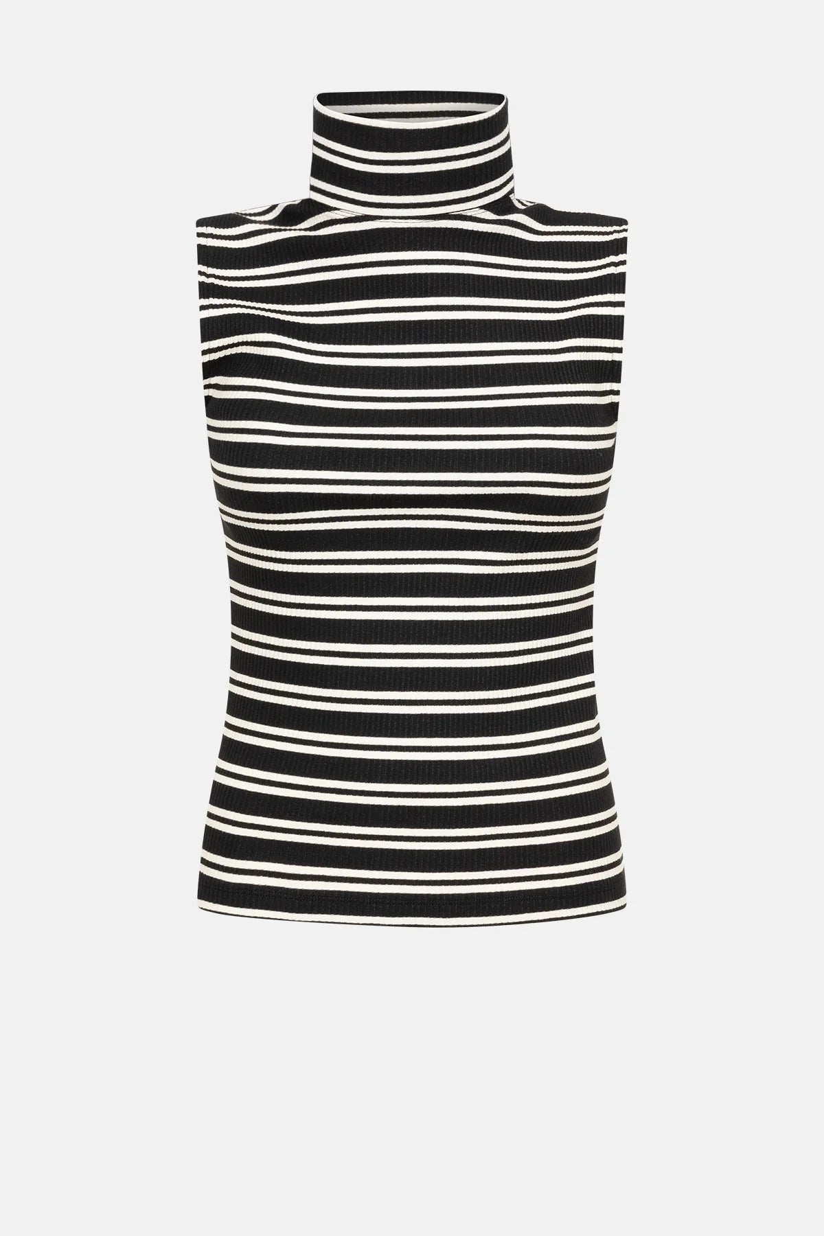 Martou Sleeveless Ribbed Turtle Neck Top Black & White