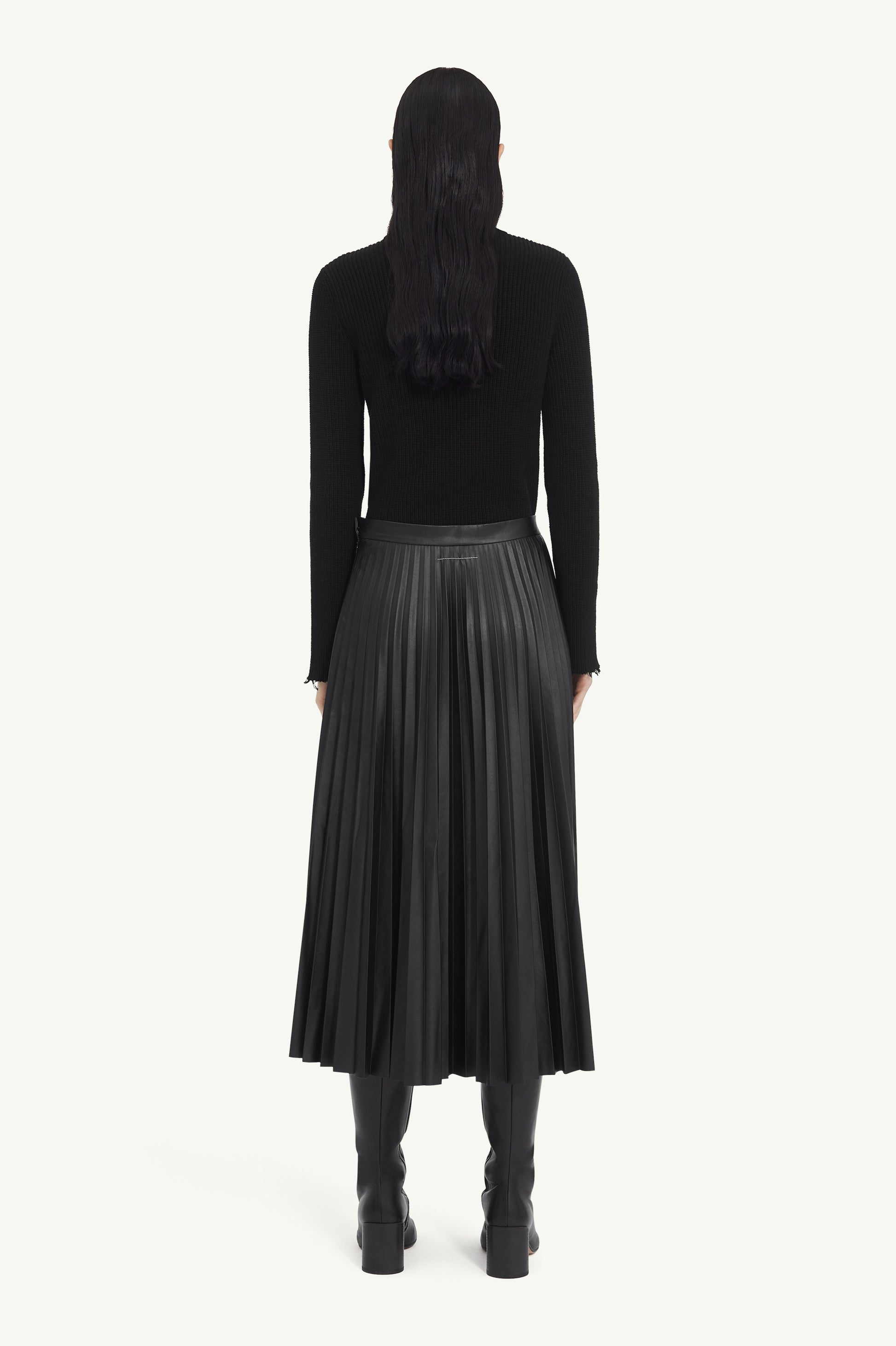 Midi plissé rok in soepel imitatieleer met hoge taille en elegante plooien. Subtiel afgewerkt met de iconische witte stiklijn op de rug.