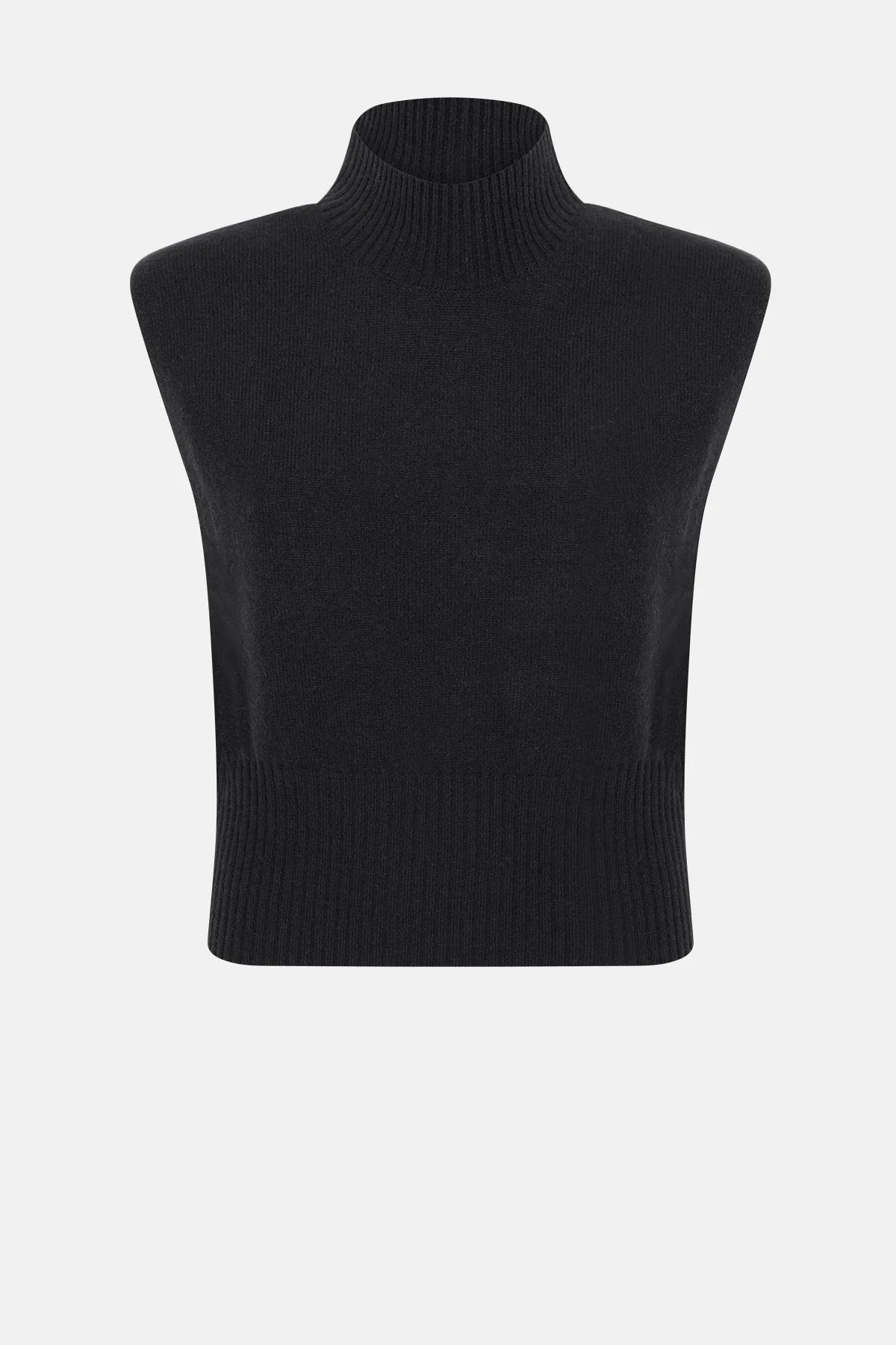 De Minda knitted sleeveless sweater is een tijdloze essential. Met hoge hals en mouwloos silhouet, perfect om te layeren of solo te dragen.