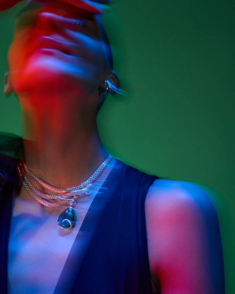 Geïnspireerd door Cleopatra, de originele femme fatale zoals afgebeeld door Alexandre Cabanel, viert La Parure de la Salamandre de kracht van vernieuwing en metamorfose. De salamander, eeuwenoud symbool van wedergeboorte, en de afneembare smaragdgroene kristaldruppel maken deze gelaagde ketting veelzijdig en transformerend. Met de hand vervaardigd door onze goudsmeden in het Antwerpse atelier.
