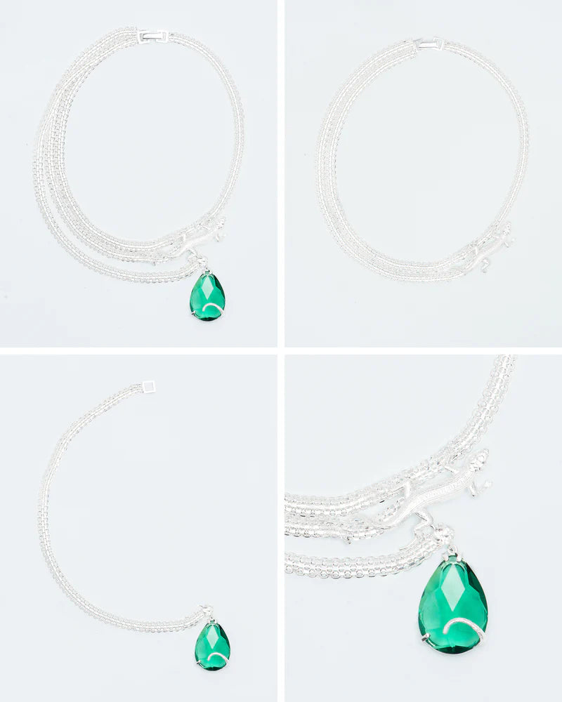 Multifunctional chain necklace with salamander and emerald crystal drop