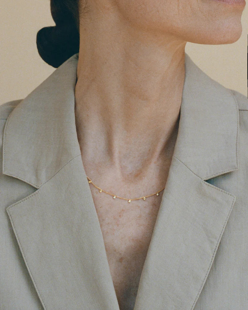 De unieke toets van de goudsmid is tastbaar in deze 18 kt. gouden ketting, waarbij elke bedel zorgvuldig met de hand werd gehamerd in ons Antwerpse atelier. De techniek mag luidruchtig zijn, het resultaat is ingetogen in zijn eenvoud. De kleine, zaadvormige bedels verwijzen naar de natuur en maken deel uit van de Voyages Naturalistes collectie, waarin de schoonheid van het veranderlijke wordt vertaald naar draagbare herinneringen.