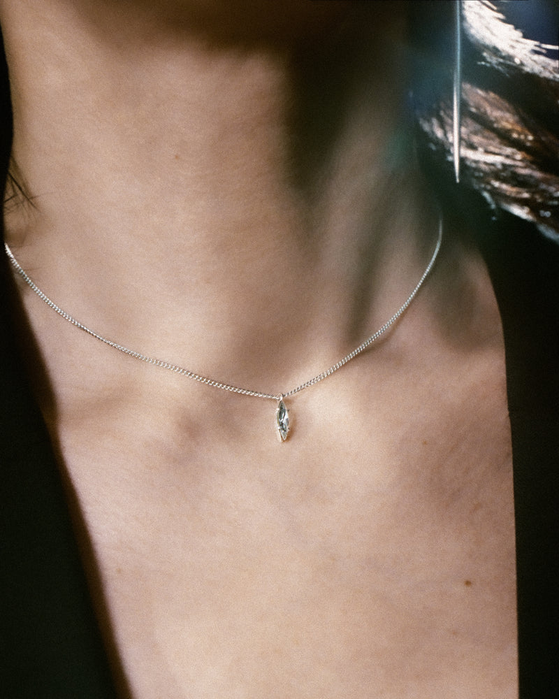 In deze Midnight Children ketting verwijst het marquize geslepen kristal naar nachtelijke lichtflitsen, die zich aftekenen tegen de zilveren schakels. Een contrast dat doet denken aan zwart-wit scènes na het donker. Elk stuk is handgemaakt door een team van goudsmeden in ons Antwerpse atelier en draagt een unieke artistieke signatuur.