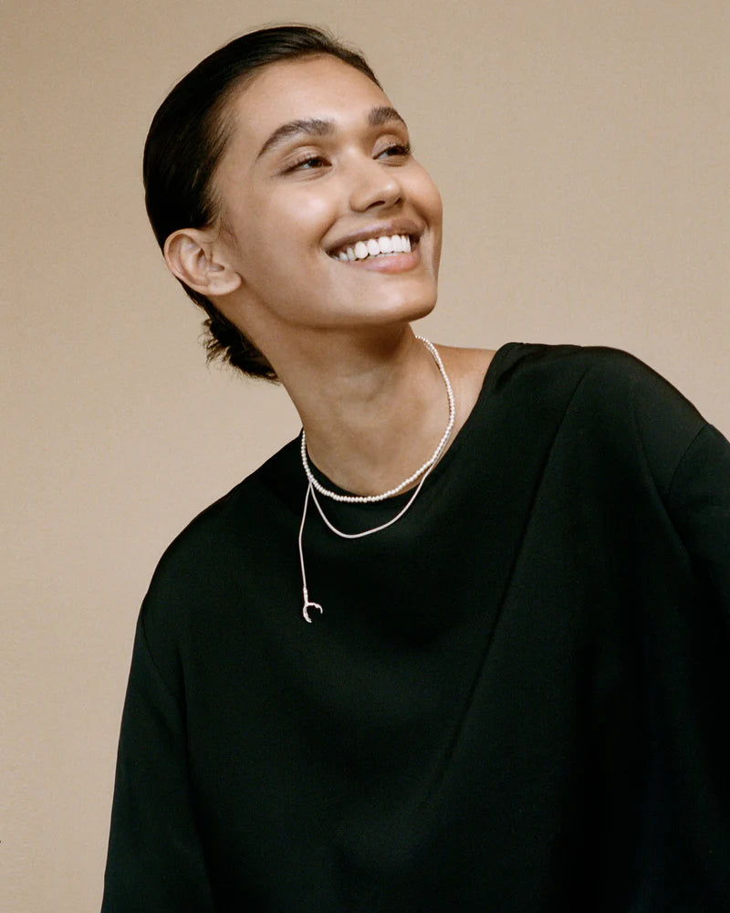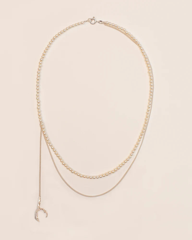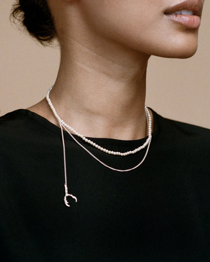 Parels, kettingen en onze iconische vogelpoot Grigri sieren je hals in een gelaagd geheel. Dit juweel is krachtig op zichzelf, maar laat zich ook moeiteloos combineren met andere stukken.