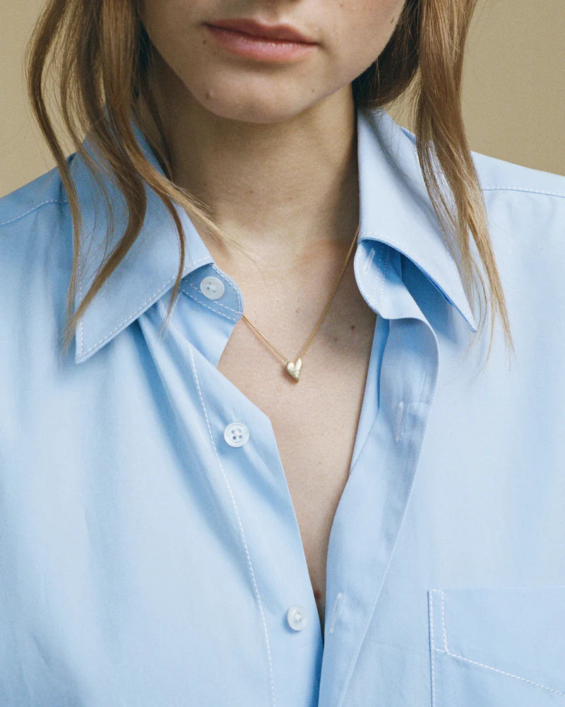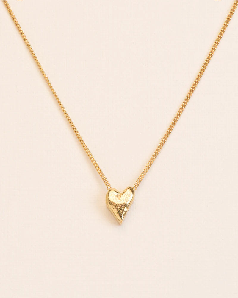 Wouters & Hendrix omschrijven zichzelf als romantic fools, met een voorliefde voor symbolen en juwelen die verwijzen naar liefde – precies waar de The Tell-Tale Heart collectie om draait. Deze ketting met een massief 18 kt. gouden hart voelt zwaar in gewicht, maar straalt subtiliteit en verfijning uit. Het hart, universeel en tijdloos, belichaamt emotionaliteit en vormt zo misschien wel de ultieme vorm voor een juweel, waarvan de sentimentele waarde vaak groter is dan de intrinsieke. Het hart werd volledig met de hand gehamerd in het Antwerpse atelier van Wouters & Hendrix. De techniek mag luidruchtig zijn, maar het resultaat onthult enkel de pure, rauwe schoonheid van 18 kt. goud.