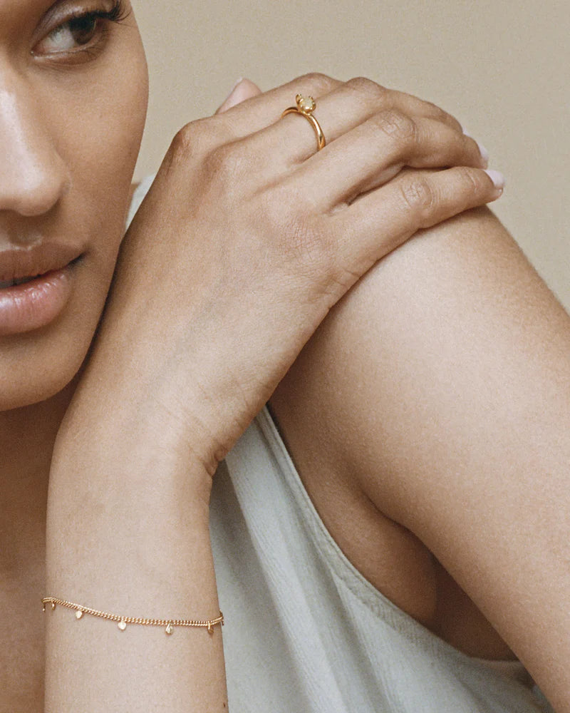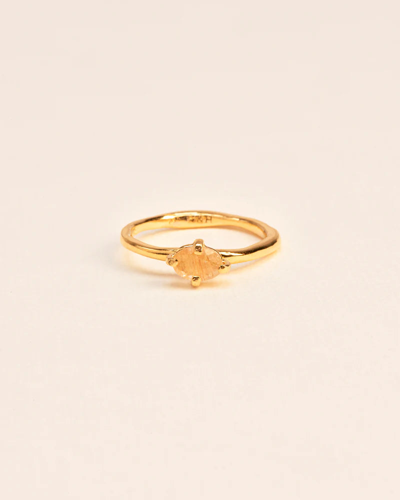 Schoonheid zit in de kleine imperfecties. Rutilated kwarts varieert in kleur, waardoor elke ring uniek is. De Voyages Naturalistes collectie probeert de altijd veranderende natuur te vatten en om te zetten in een draagbare herinnering. Deze ring is handgemaakt door een team van goudsmeden in ons Antwerpse atelier.