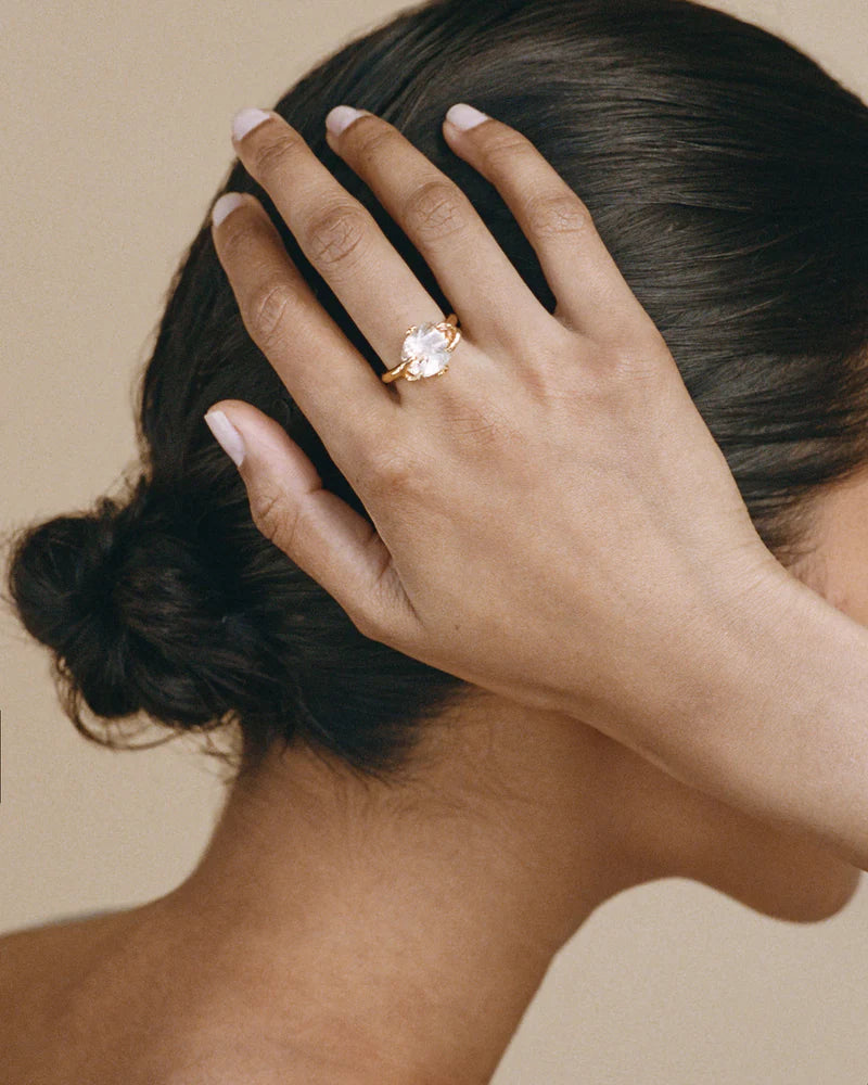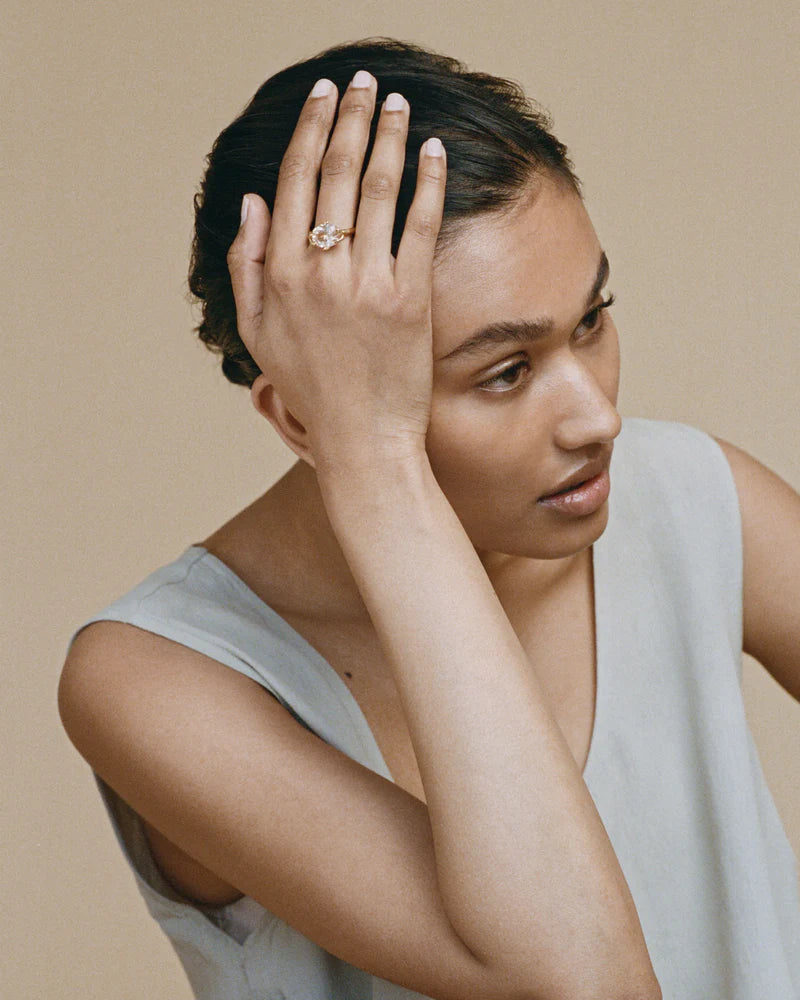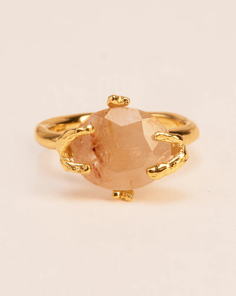 Schoonheid ligt in de kleine imperfecties. Het rutilated kwarts varieert in kleur, waardoor elke ring uniek is. De Voyages Naturalistes collectie probeert het steeds veranderlijke te vatten en om te zetten in een draagbare herinnering. Deze ring is met de hand gemaakt door onze goudsmeden in het Antwerpse atelier.