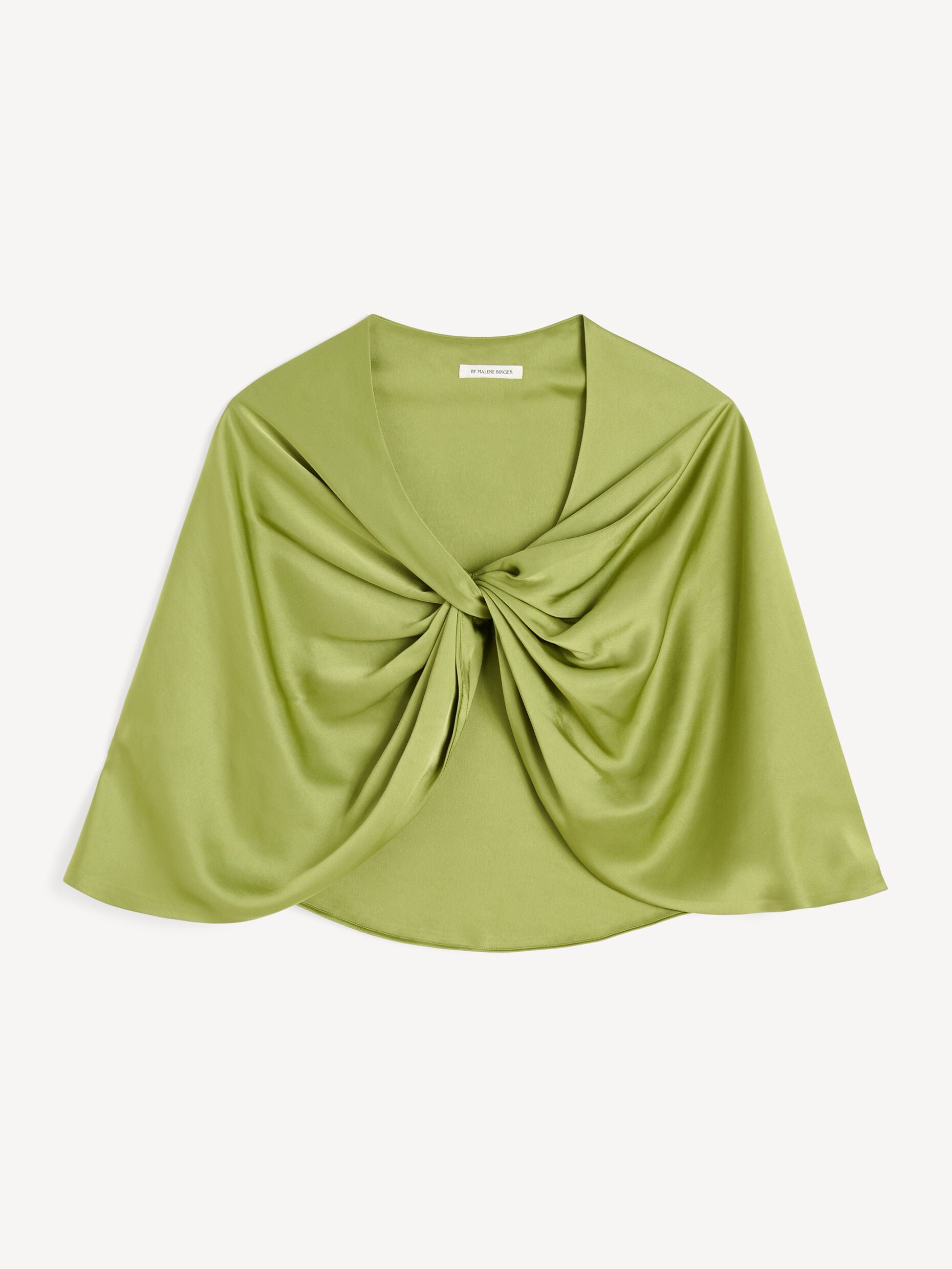 De Pinlos cape in glanzend satijn geeft elke avondlook een bohemien flair. Draag gecentreerd of nonchalant over één schouder.