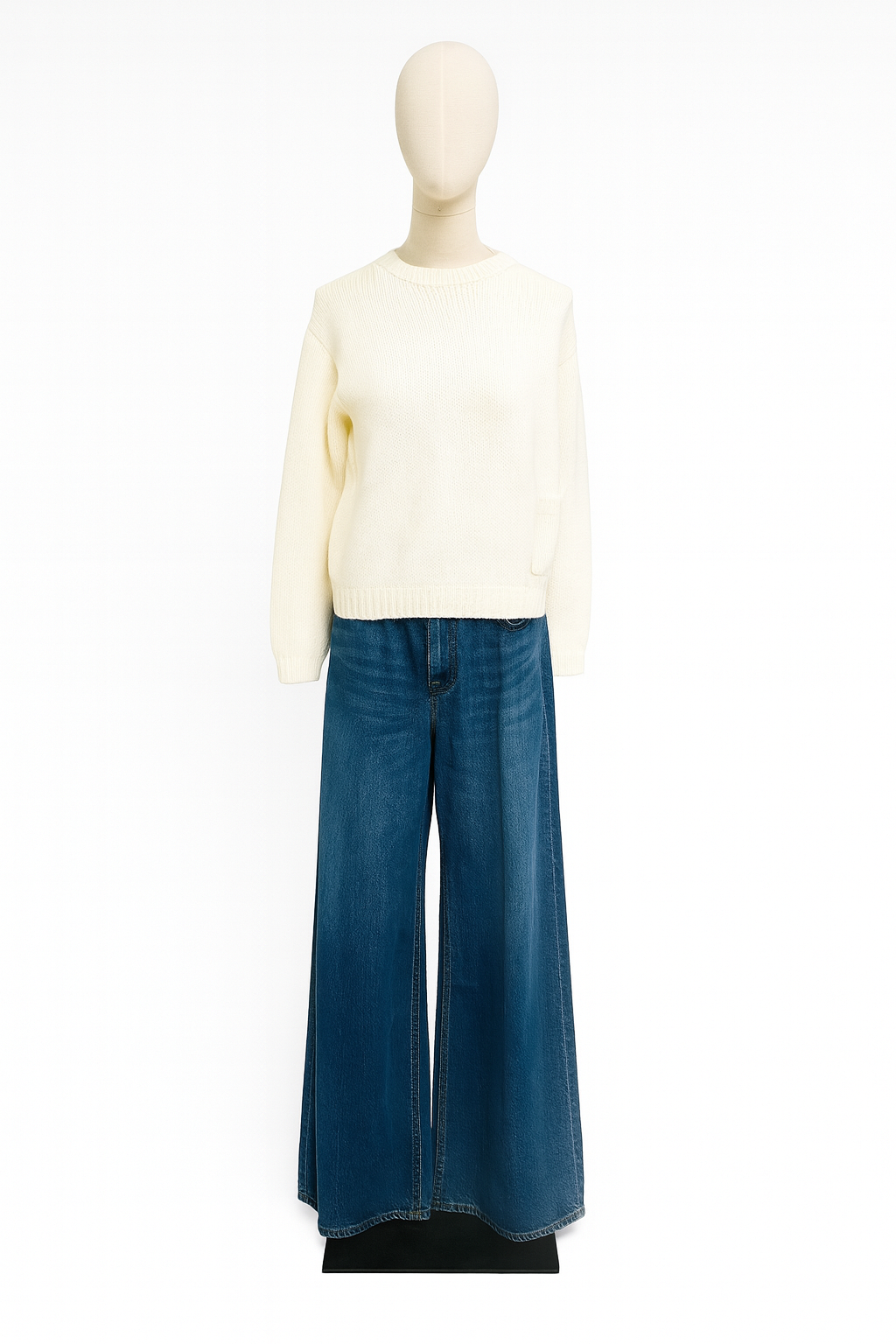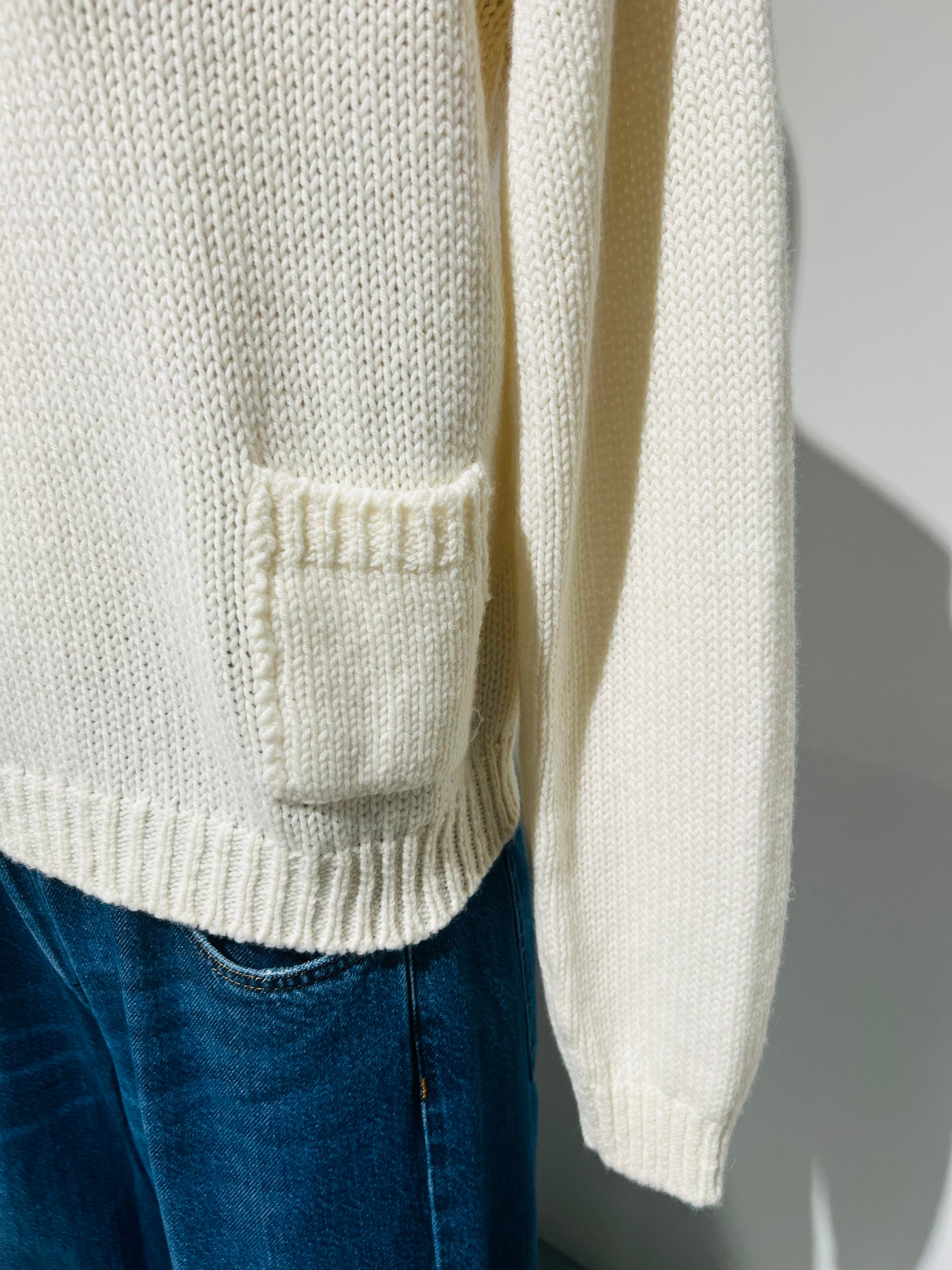 Zachte trui in lichtroze tint met ruitpatroon in rosé strass en knoopdetail aan de zijkant. Tijdloos, elegant en heerlijk comfortabel.