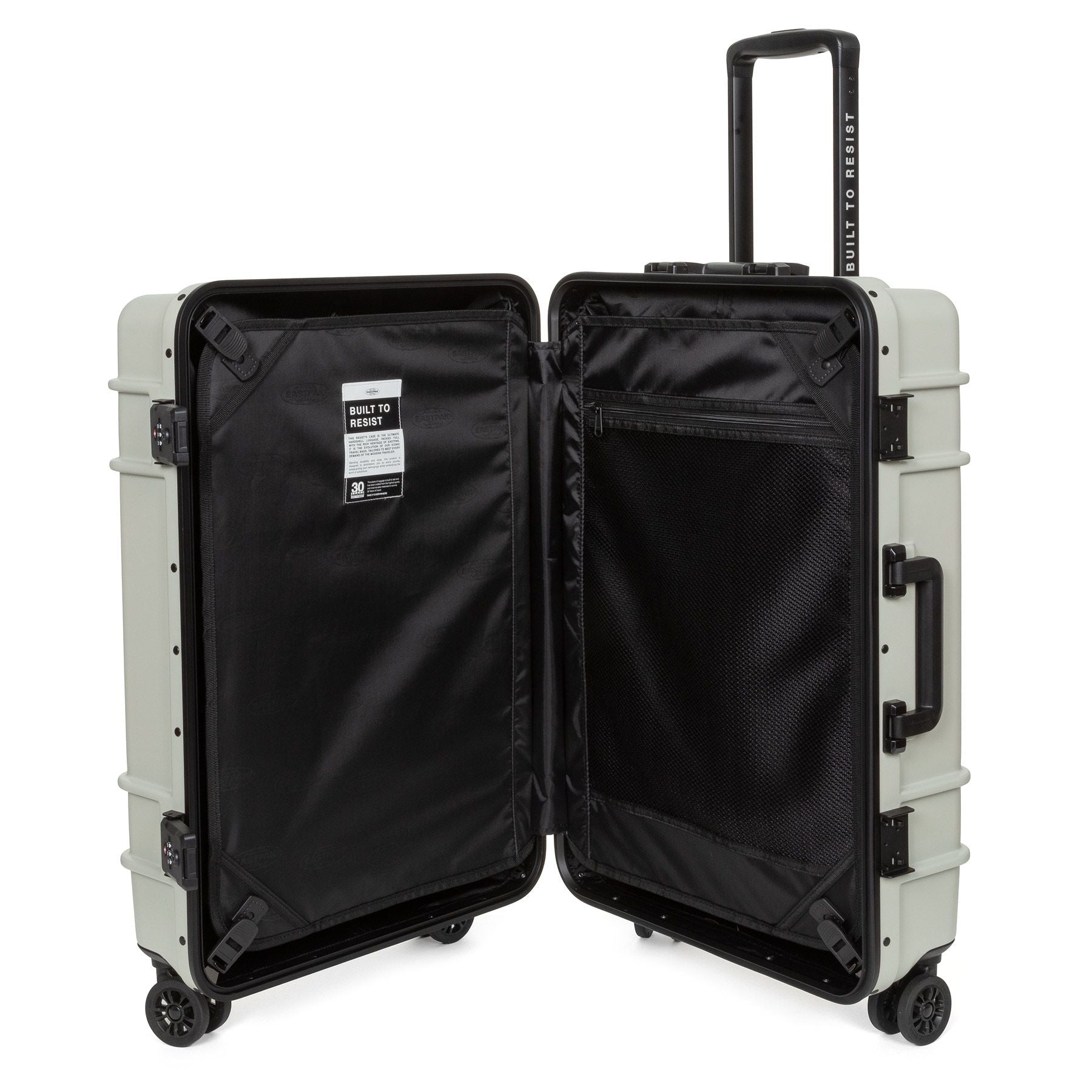 Deze grote hardschalige trolley in Sand combineert robuustheid met veel opbergruimte voor langere reizen.