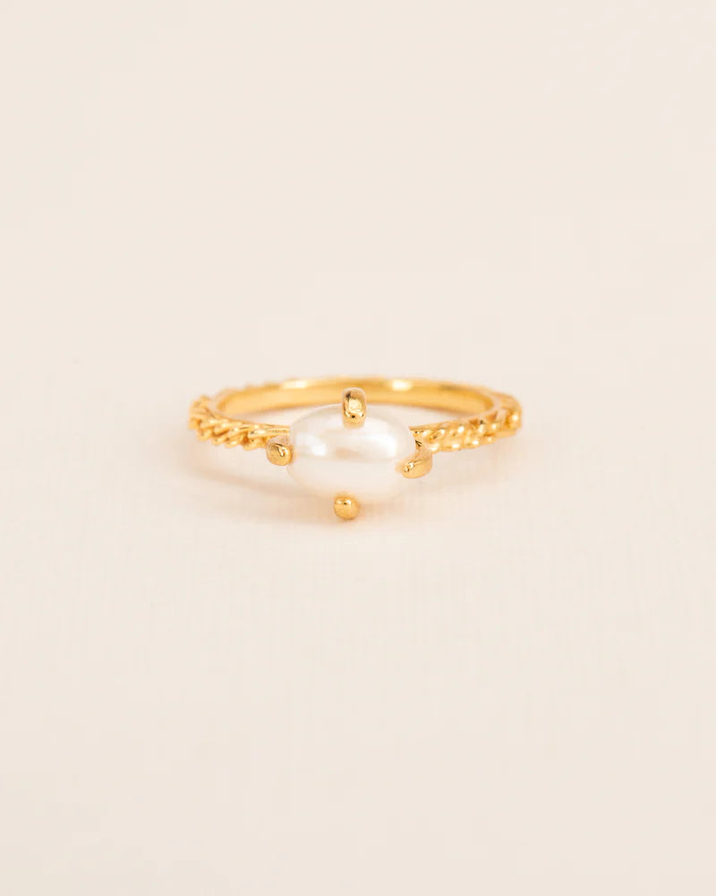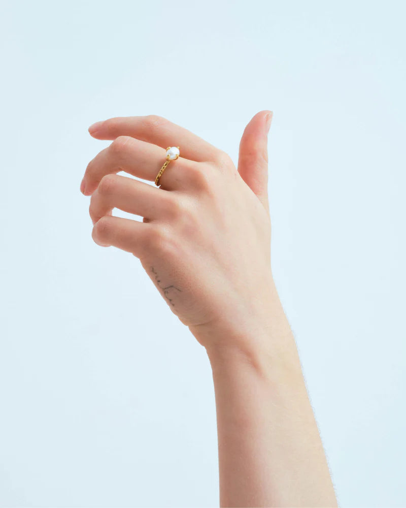 Ring with 'Chapters' texture and freshwater pearl