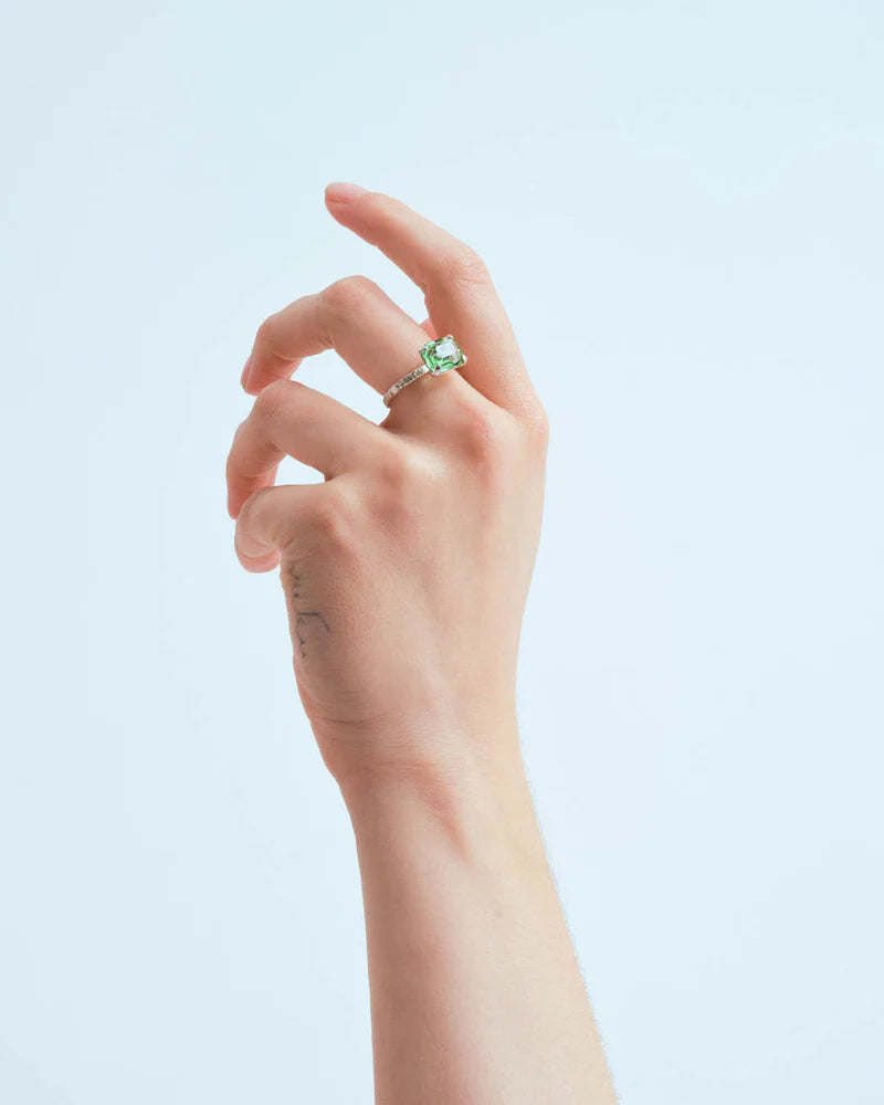 Deze sterling zilveren ring is een tijdloze interpretatie van het klassieke juweel, verrijkt met ons kenmerkende hoofdstukkenmotief. De peridoot geeft het ontwerp frisheid en levendigheid, wat resulteert in een incontournable om voor altijd te koesteren. De stukken uit Les Éternelles zijn juwelen om voor altijd te hebben en te houden. Elk exemplaar wordt met de hand vervaardigd door onze goudsmeden in het Antwerpse atelier.