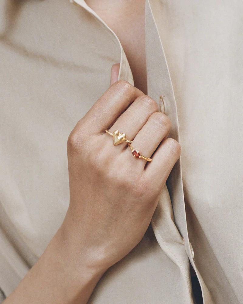 Deze sterling zilveren ring met gehamerd hart weerspiegelt onze voorliefde voor liefdessymbolen. Het hart, universeel en tijdloos, belichaamt emotie en is misschien wel de ultieme vorm voor een juweel, waarvan de sentimentele waarde vaak groter is dan de intrinsieke. Het hart wordt volledig met de hand gehamerd in ons Antwerpse atelier – een luidruchtige techniek die resulteert in een subtiel en verfijnd sieraad.