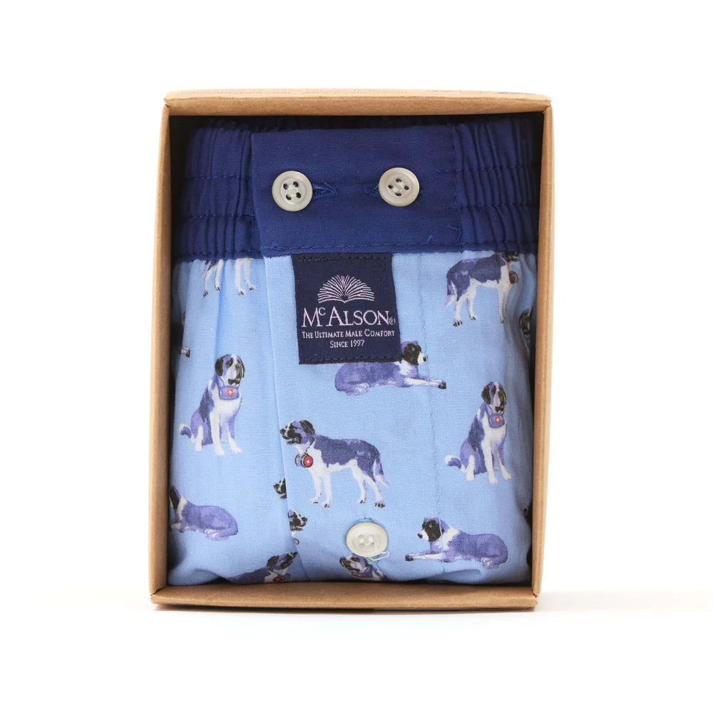 Boxer short in lichtblauw met Saint Bernard-print. Comfort en speelse stijl komen samen in deze McAlson klassieker van zacht katoen.