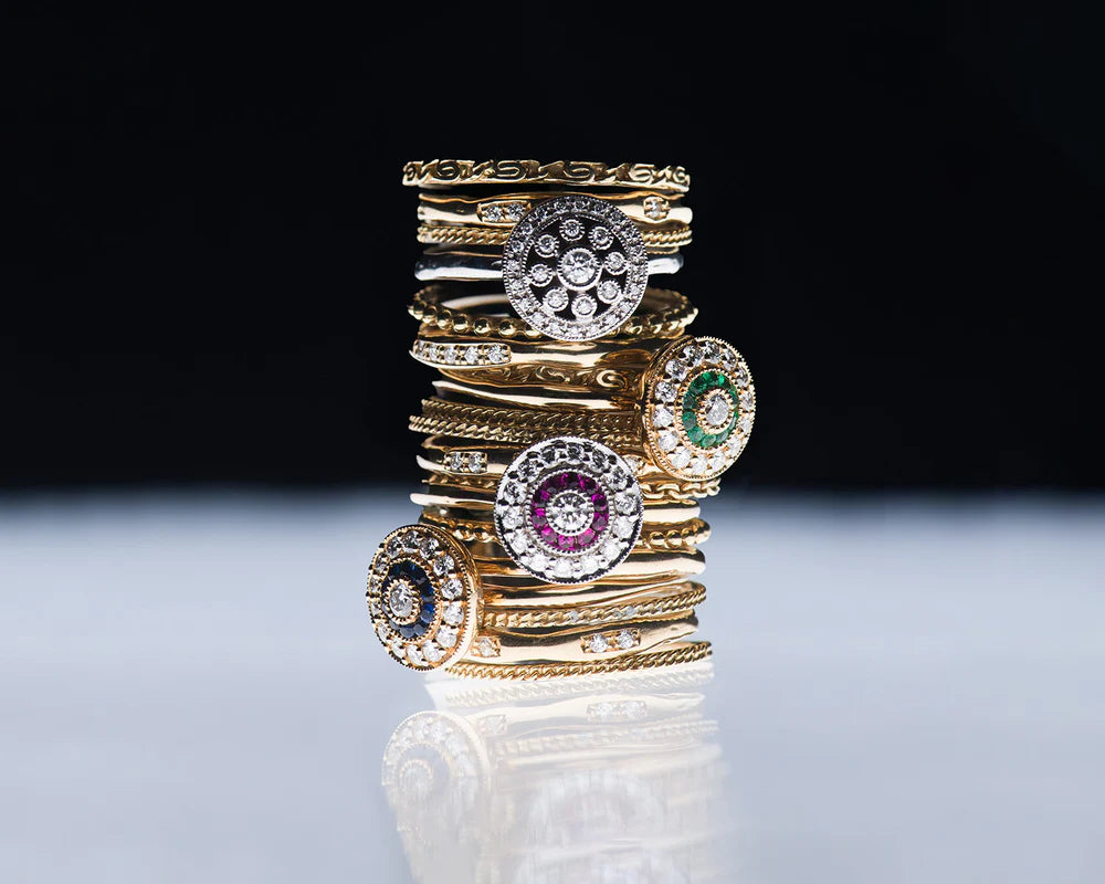 Set of seven stacked 'Chapters' rings in 18 ct. gold