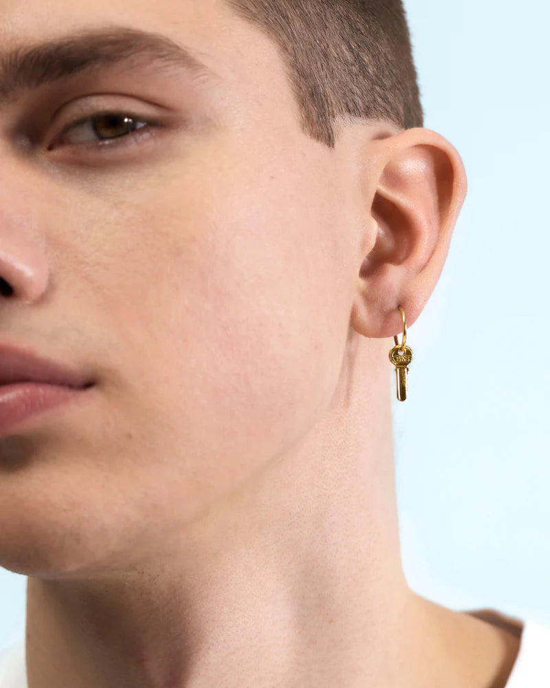 Deze sterling zilveren oorbel (Half paar) met sleutelsymbool verwijst naar het werk van René Magritte, waarin de sleutel meermaals opduikt. Het is ook een interpretatie van zijn neiging om alledaagse objecten in een ongebruikelijke context te plaatsen – een gedachte die het ontwerpproces van Wouters & Hendrix inspireert.