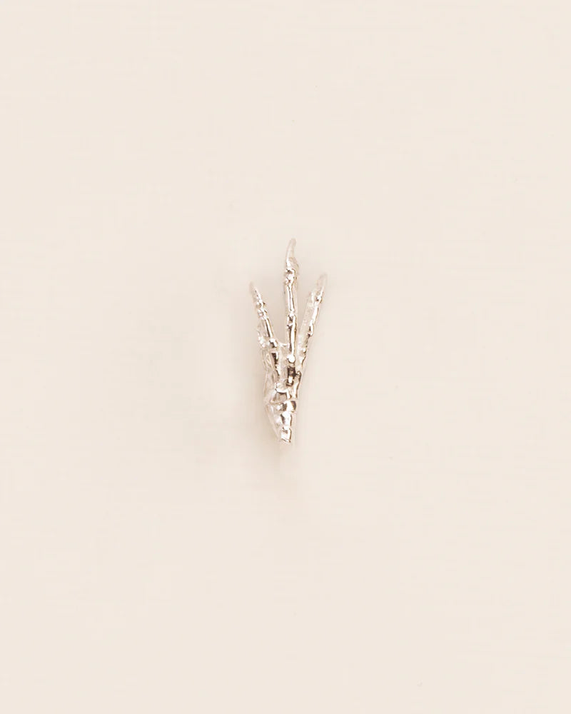 Wat begon met een zoektocht naar de perfecte mal, leidde tot een bezoek aan een taxidermist – en tot zes kuikens die nog steeds rondlopen in Katrins tuin. Sindsdien groeide de vogelpoot uit tot een Wouters & Hendrix icoon, terug te vinden in ringen, kettingen en oorbellen.