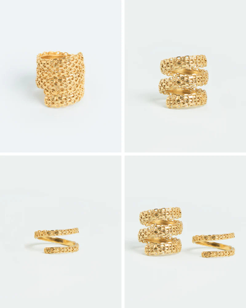 Statement ring ensemble with chain texture