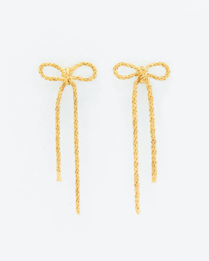 Fijne oorstekers met strikvorm en textuur, met de hand gemaakt in Antwerpen. Draag ze op zichzelf of combineer speels met andere vormen.