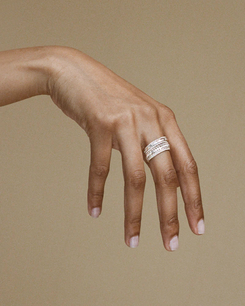 Deze iconische stapelring verenigt zeven klassieke schakelstijlen, gegoten in één vorm. Door de schakels hun beweeglijkheid te ontnemen, ontstaat een uniek ontwerp dat subtiel speelt met de contouren van je hand. De Chapters-ringen zijn verzamelstukken, elk een symbool voor een bijzonder moment in je leven. Elk exemplaar wordt met de hand vervaardigd door onze goudsmeden in het Antwerpse atelier.